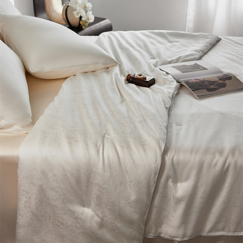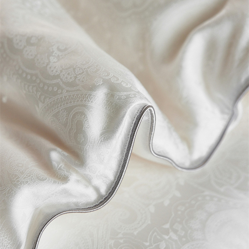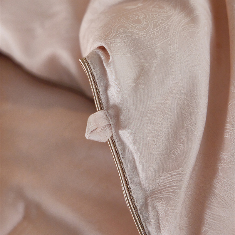 面料选用80支兰精天丝棉大提花,复古大欧式提花,进口织机织造,将画稿更完美的呈现出来。既有天丝的光泽柔滑,又兼具长绒棉的细糯棉柔。内衬防钻层为针织纱布面料,采用独特的缝制方案,将内衬和被面缝合,在使用过程中不会产生膈应感。
