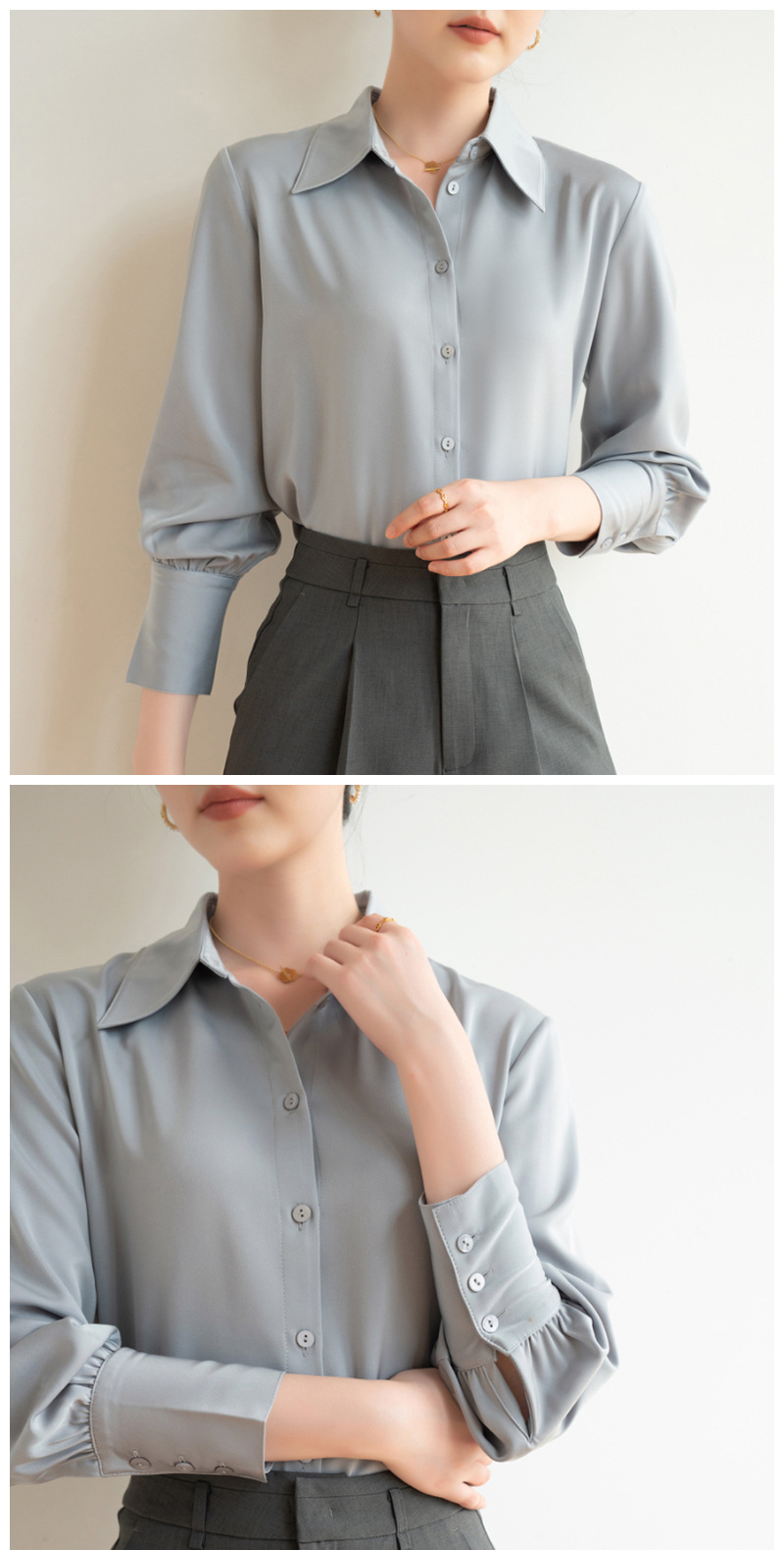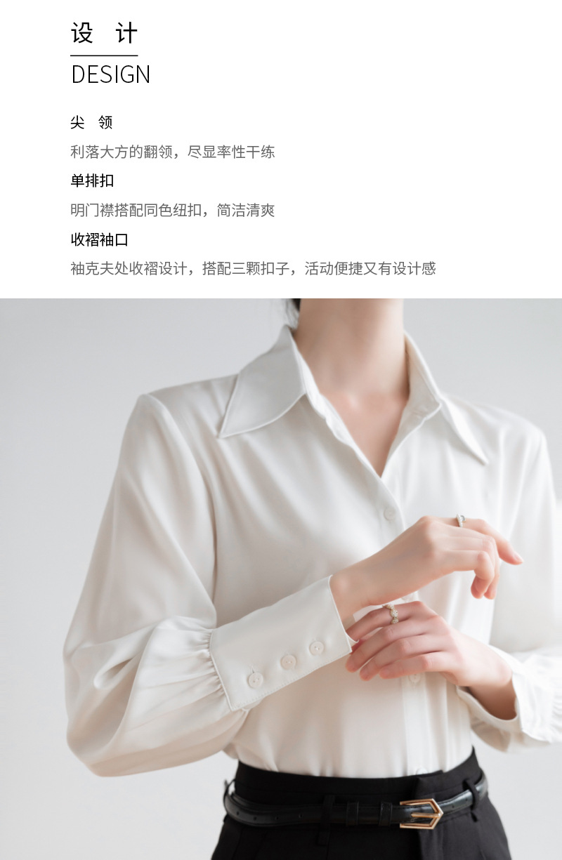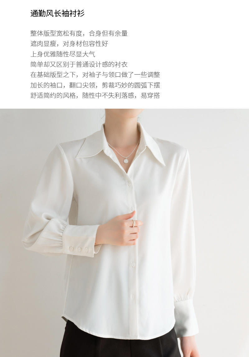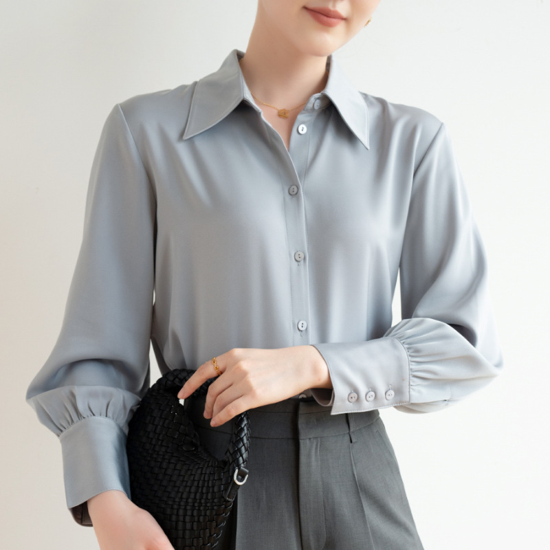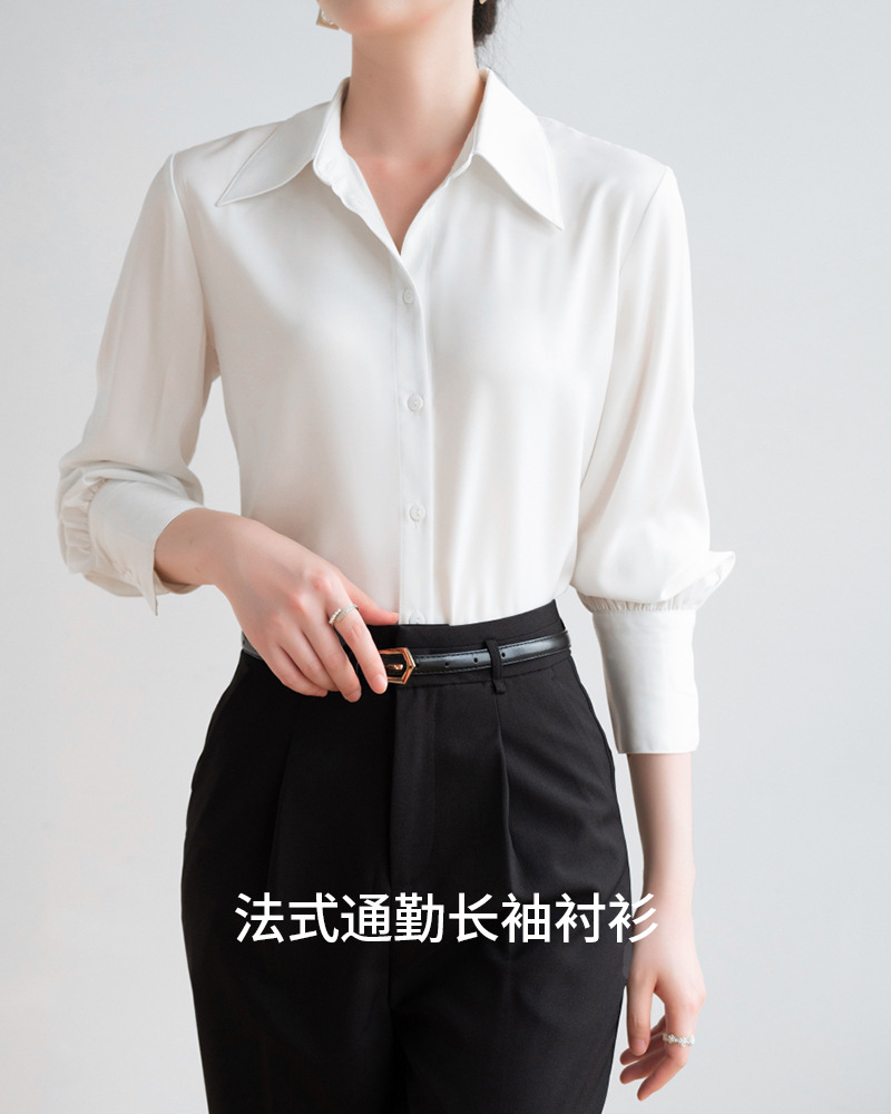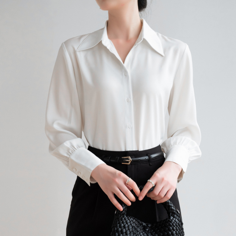 실크 같은 무거운 무게 새틴 긴팔 화이트 셔츠 여성의 가을 프랑스 디자인 센스 틈새 하이 엔드 텍스처 통근 셔츠 여성용