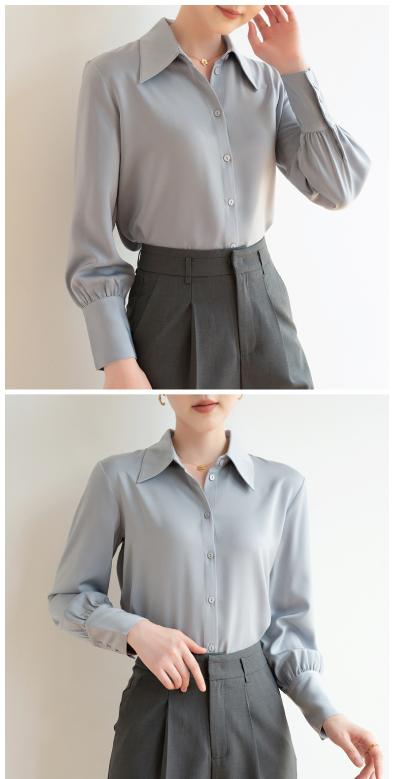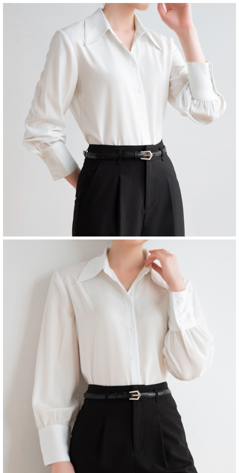 실크 같은 무거운 무게 새틴 긴팔 화이트 셔츠 여성의 가을 프랑스 디자인 센스 틈새 하이 엔드 텍스처 통근 셔츠 여성용스토어 가기
