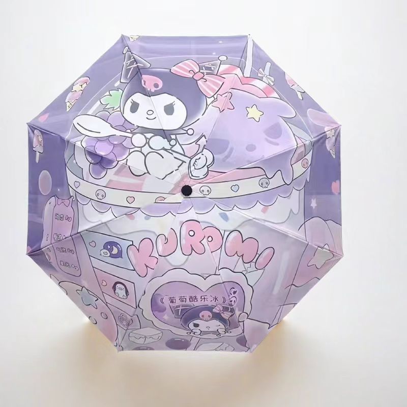 도매 Sanrio 비닐 이중 목적 태양 우산 수동 접는 비닐 만화 태양 우산 어린이 우산스토어 가기