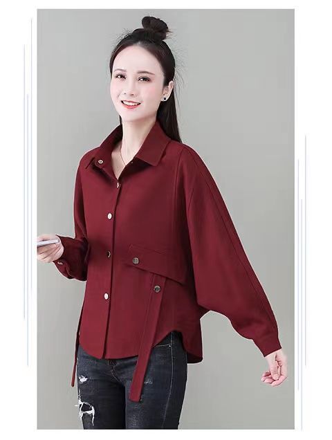 세련된 패션 가을 뉴 에이지 감소 배꼽 버건디 셔츠 여성용 긴팔 느슨한 슬리밍 탑 플러스 사이즈 여성 의류스토어 가기