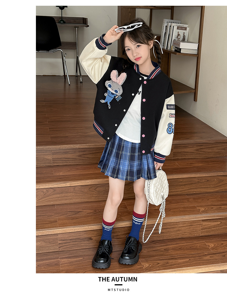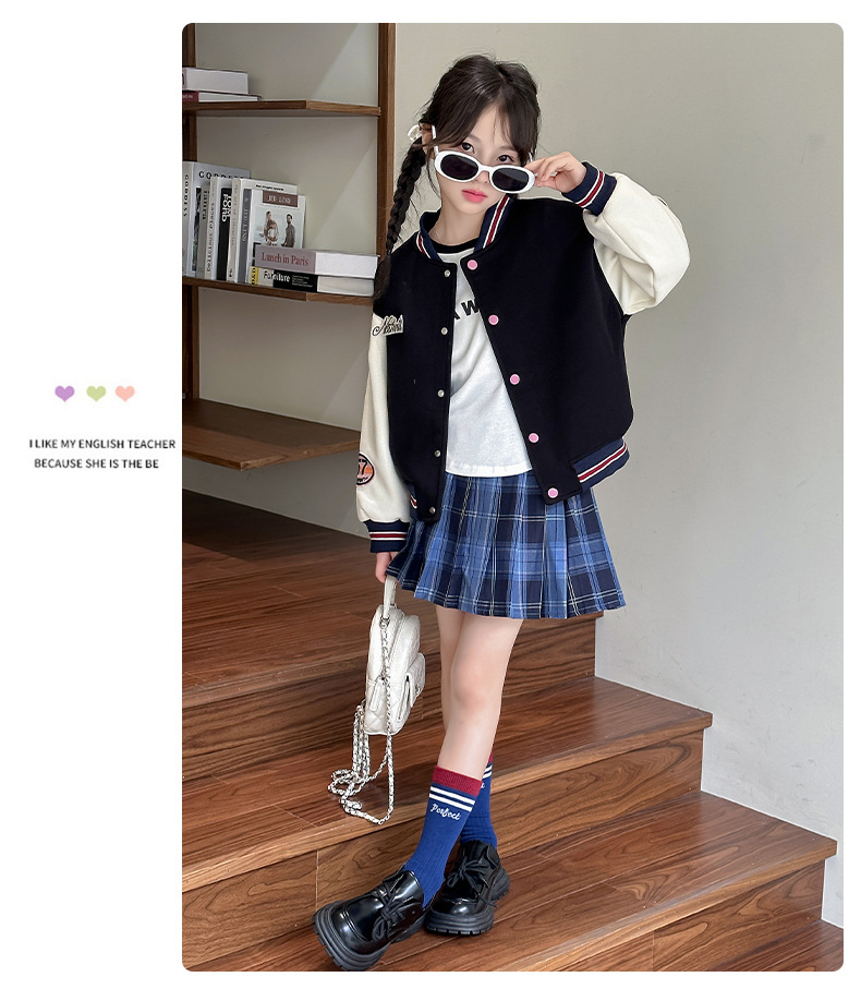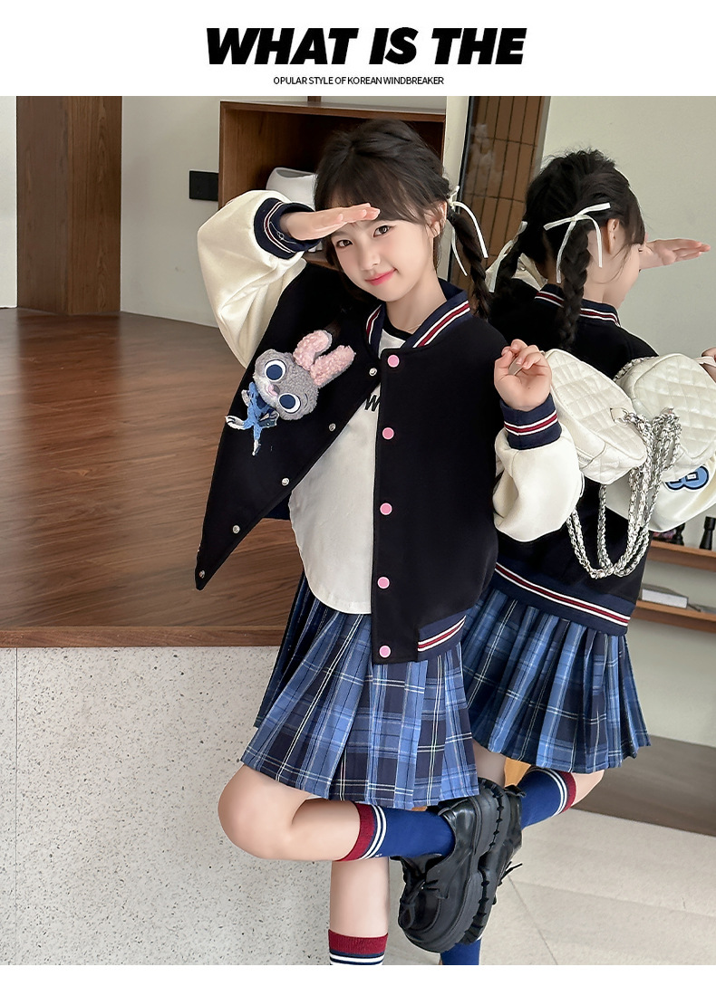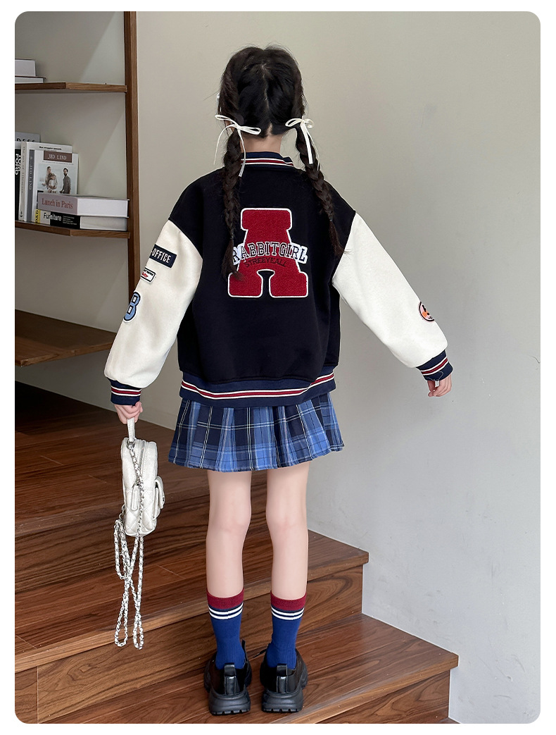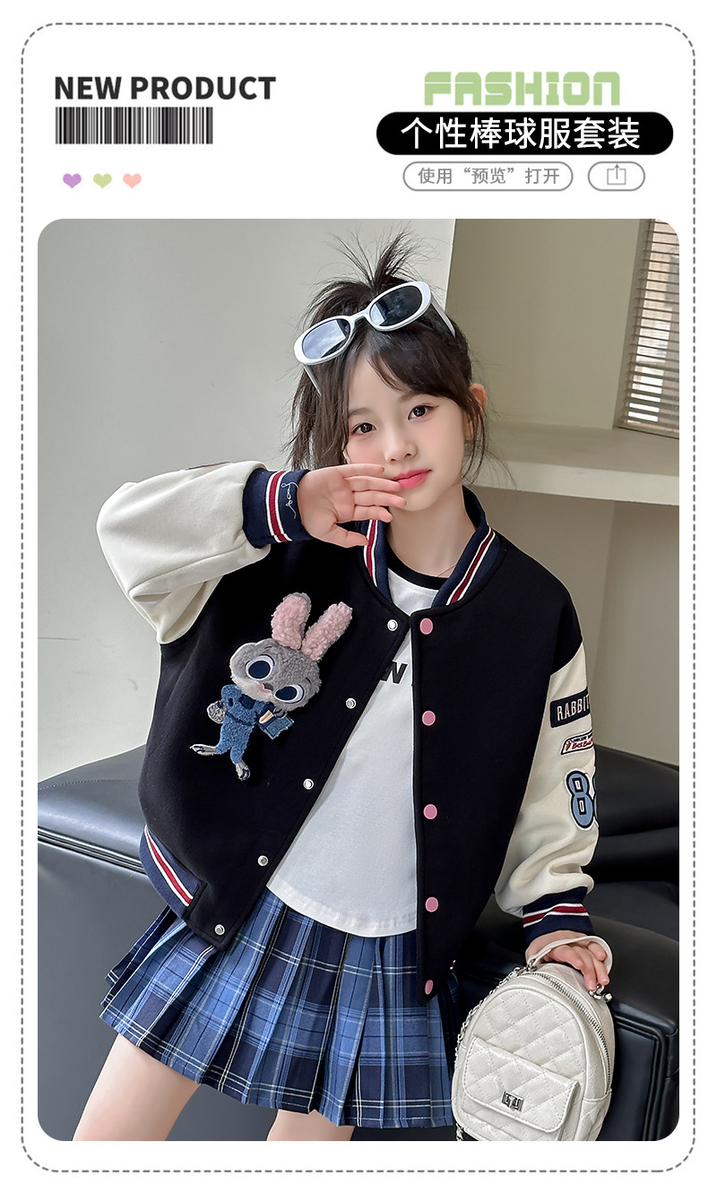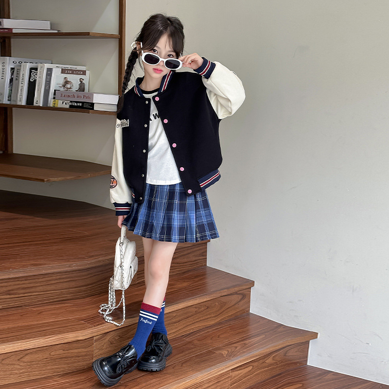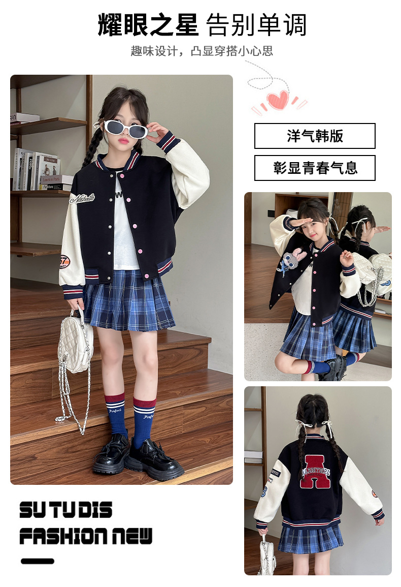 소녀 야구 세트 코트 봄과 가을 2024 새로운 스타일 소녀의 가을 재킷 어린이 가을 유행 탑스토어 가기