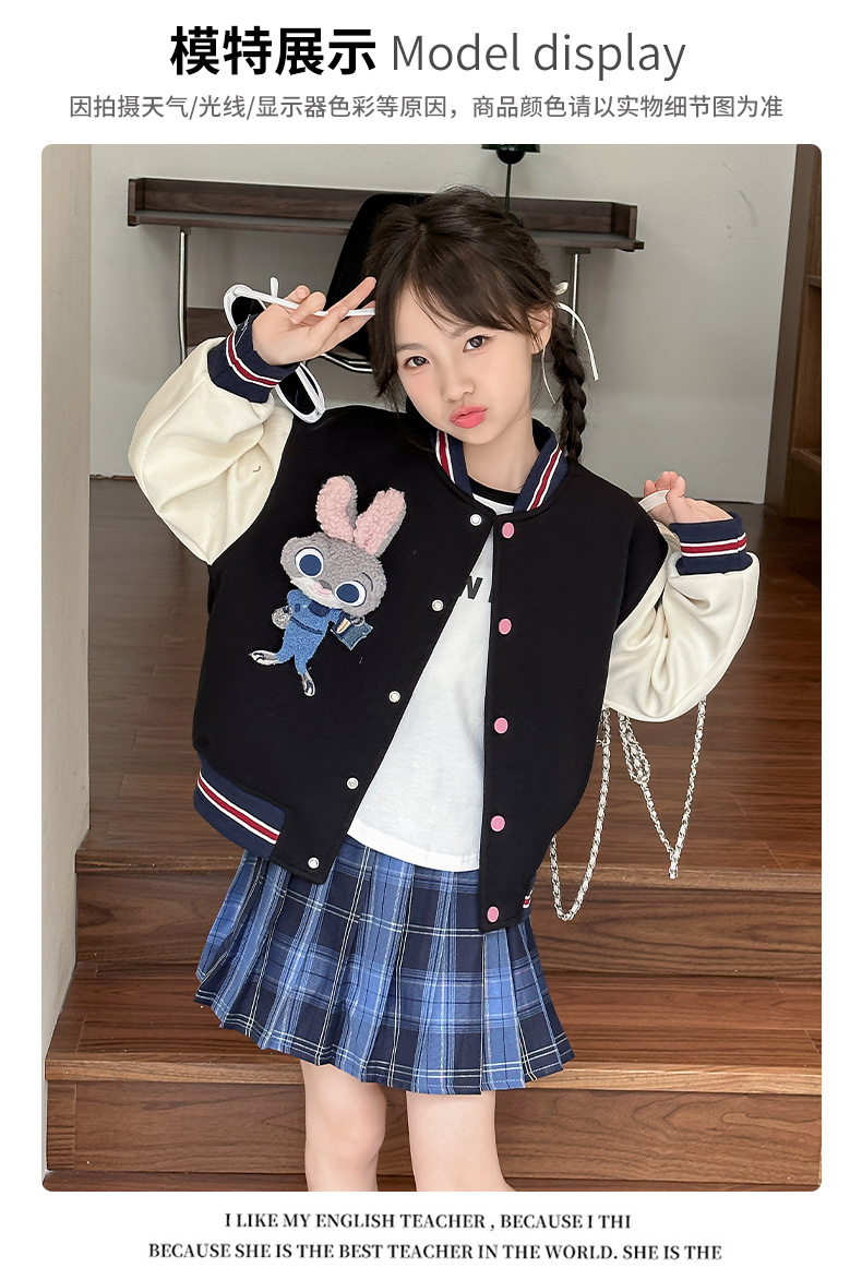 소녀 야구 세트 코트 봄과 가을 2024 새로운 스타일 소녀의 가을 재킷 어린이 가을 유행 탑