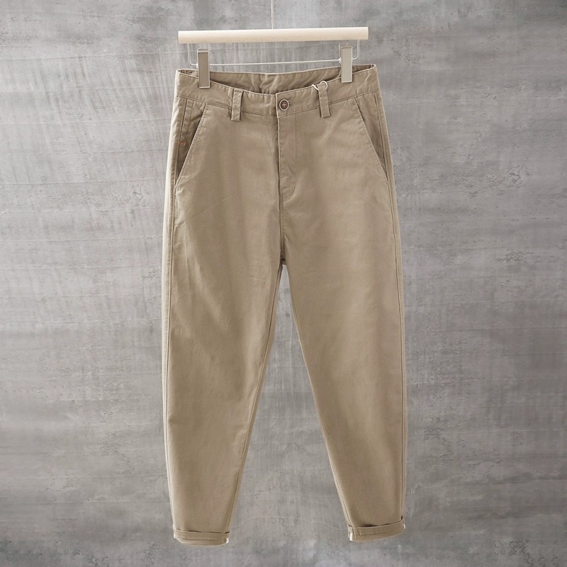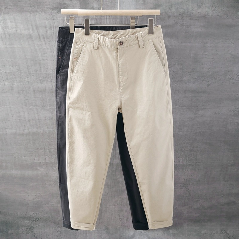 캐주얼 바지 남자 여름 얇은 트렌디 올매치 한국 스타일 슬림 핏 레깅스 바지 면 작은 모양의 나인 조명 높이