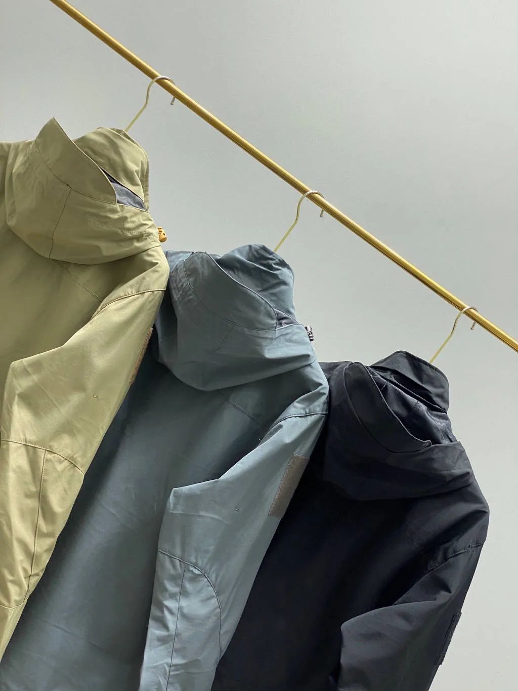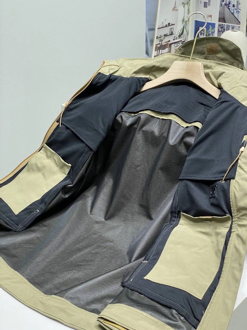 Tangjia 같은 스타일의 남성용 봄 신작 남성용 야외 숨겨진 모자 디자인 방수 스탠드 칼라 재킷
