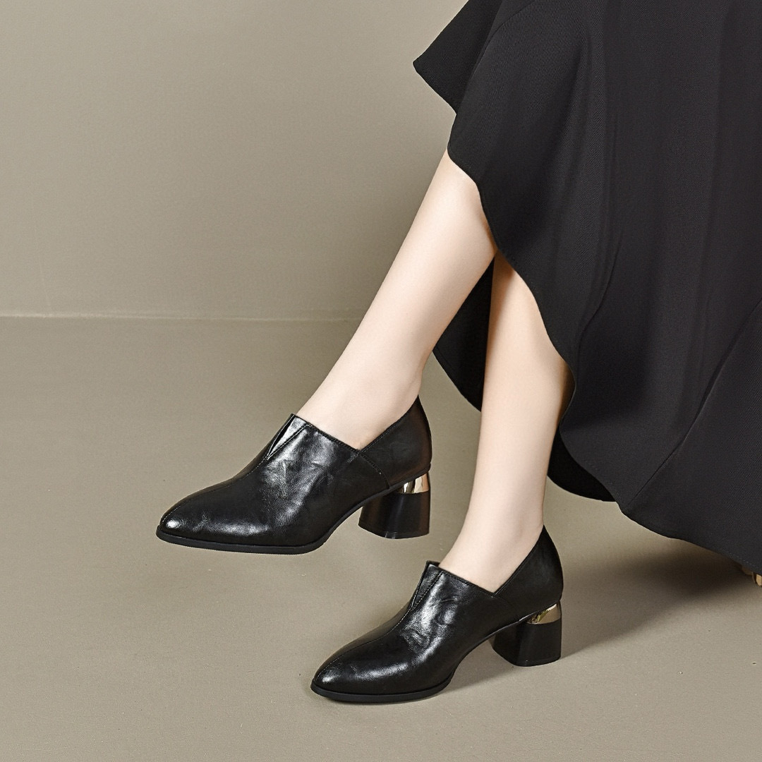 尖头粗跟深口单鞋~微开口的设计简约又不失优雅