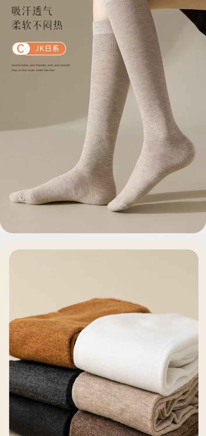 가을 겨울 여성용 종아리 양말, 항균 양말, 여성용 보온 두꺼운 면 양말, 일본식 땀 흡수 긴 양말, 냄새 방지