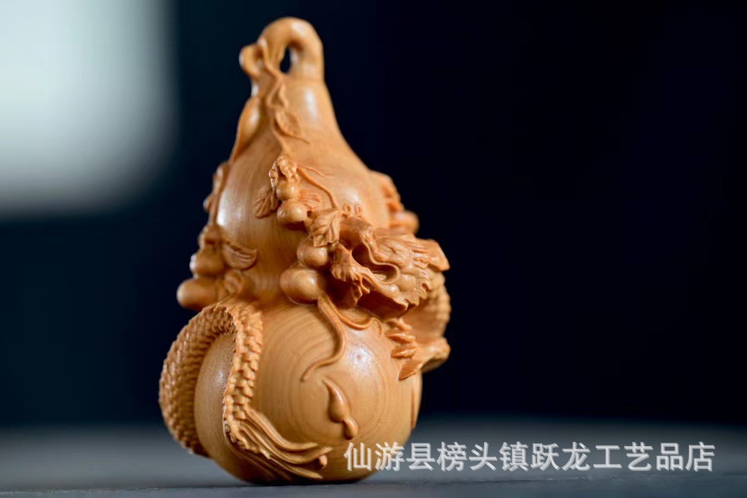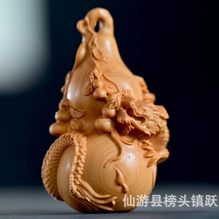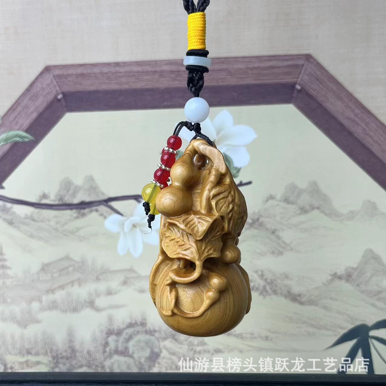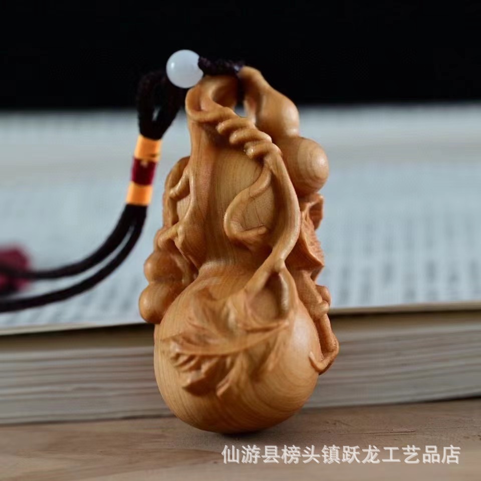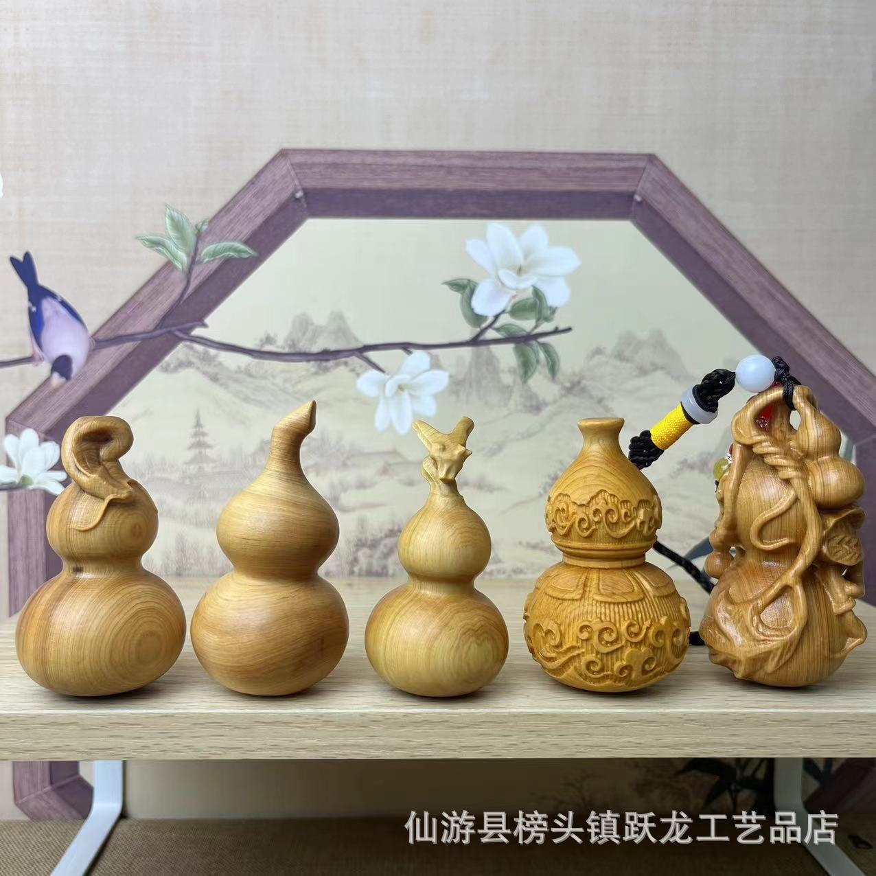 Thuja 나무 조각 수도꼭지 조롱박 펜던트 멀티 자식 조롱박 장식품 홈 오피스 행운의 돈 기사 놀이 펜던트스토어 가기