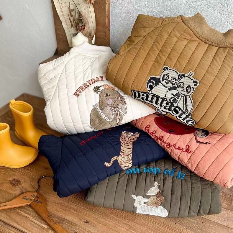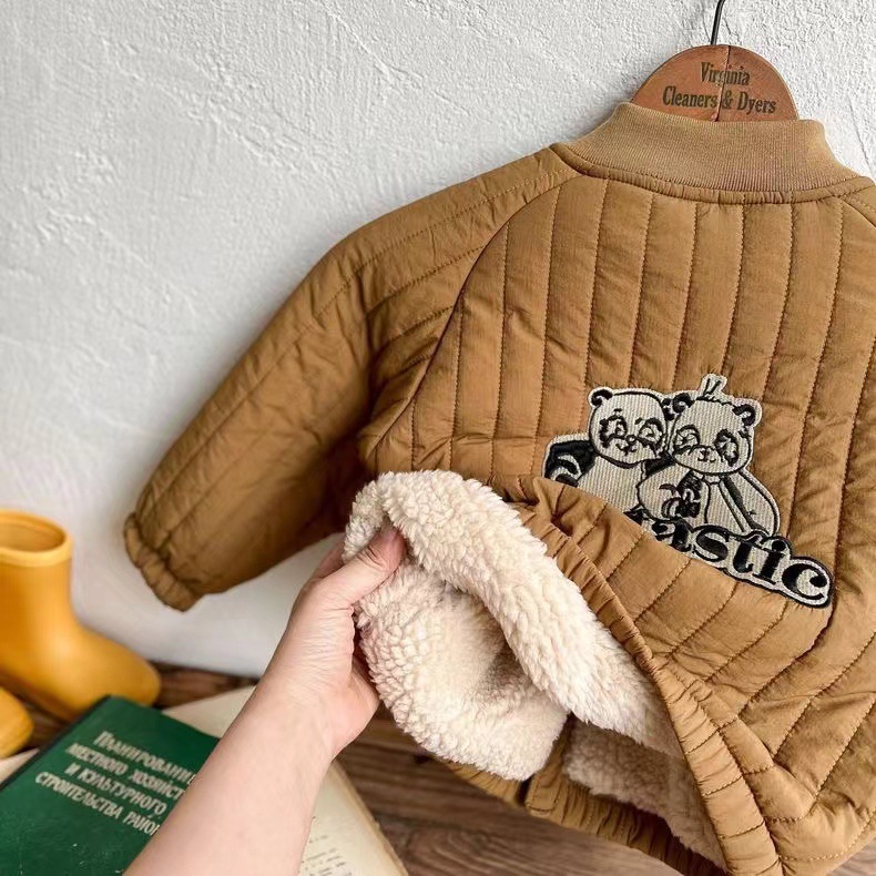 가을과 겨울 한국 스타일 어린이 만화 자수 야구 세트 두꺼운 자켓 코튼 따뜻한 올 매치 카디건