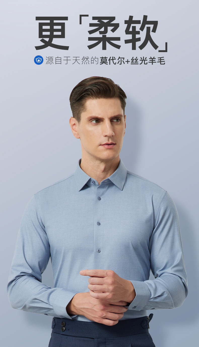 양모 함유, 세탁기 사용 가능 긴팔 셔츠 남성용 25년 가을 겨울 모달 두꺼운 비즈니스 고급 캐주얼 셔츠스토어 가기