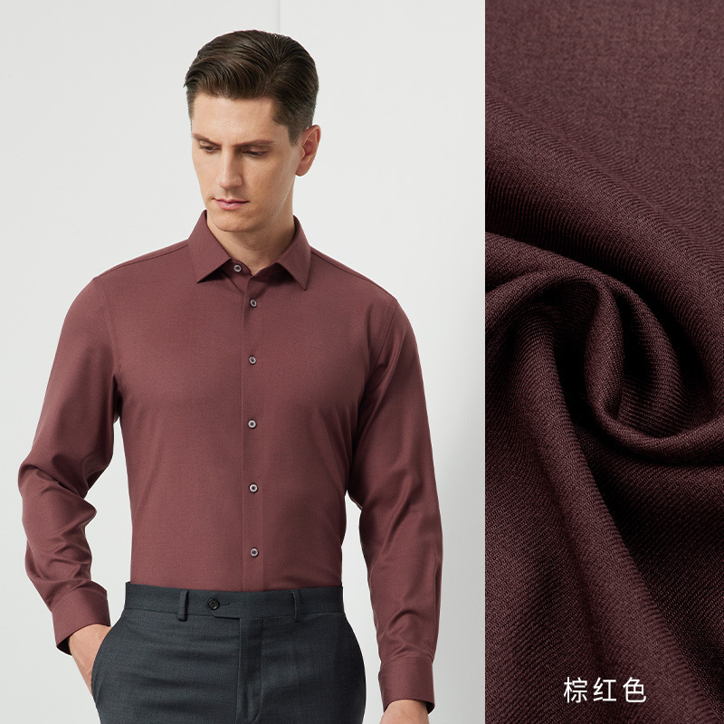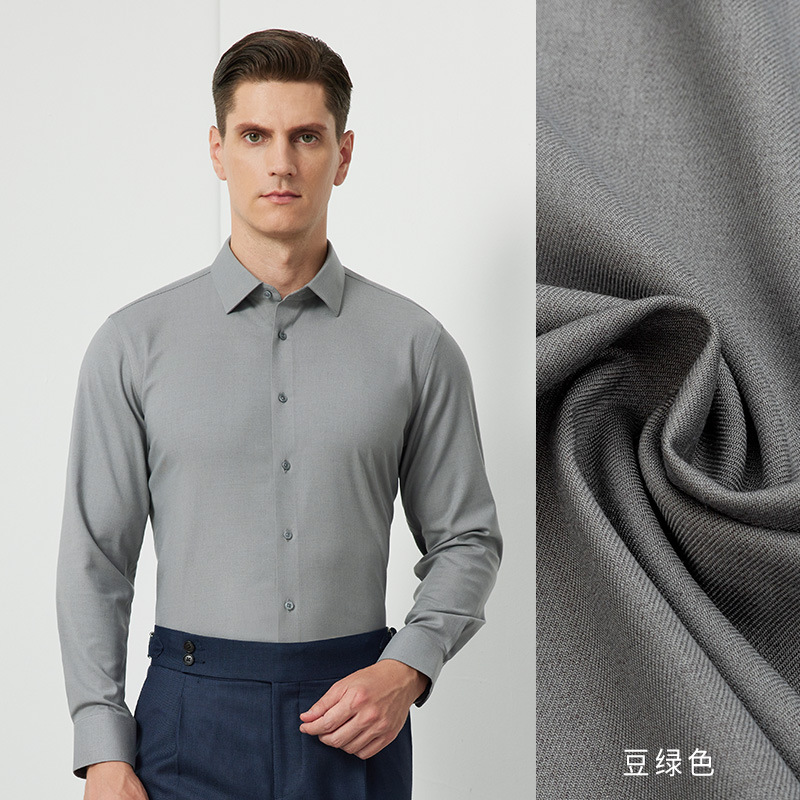 양모 함유, 세탁기 사용 가능 긴팔 셔츠 남성용 25년 가을 겨울 모달 두꺼운 비즈니스 고급 캐주얼 셔츠