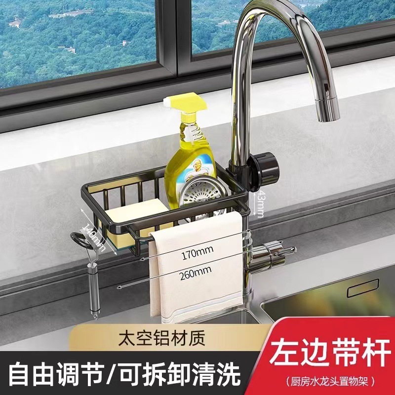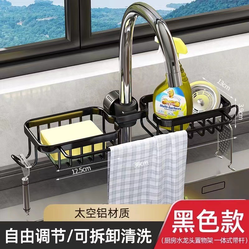 수도꼭지 저장 랙 공간 알루미늄 주방 싱크 저장 랙 배수 트레이 다기능 교수형 바구니를 가진 가정용 천스토어 가기