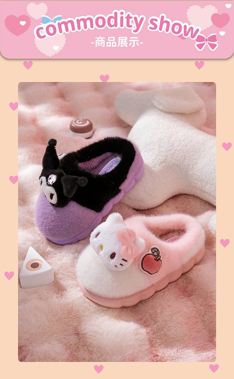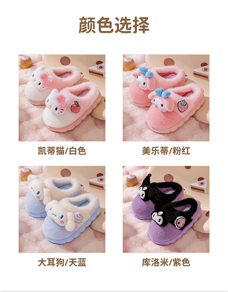 도매 산리오 어린이 면화 슬리퍼 세대 헬로 키티 쿨로 미 귀여운 만화 가을과 겨울 부모 자식 슬리퍼 여성스토어 가기