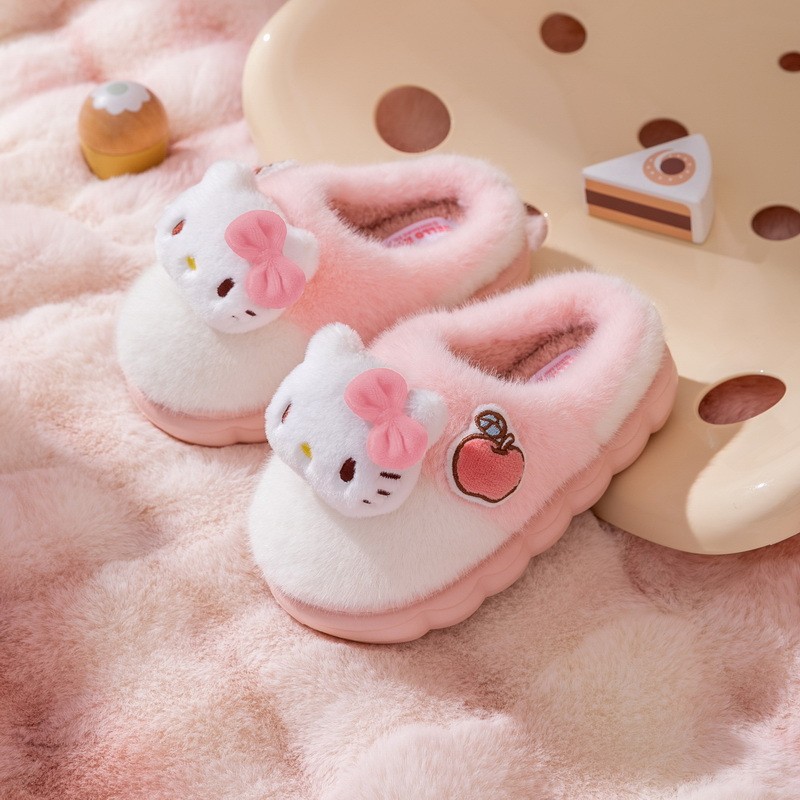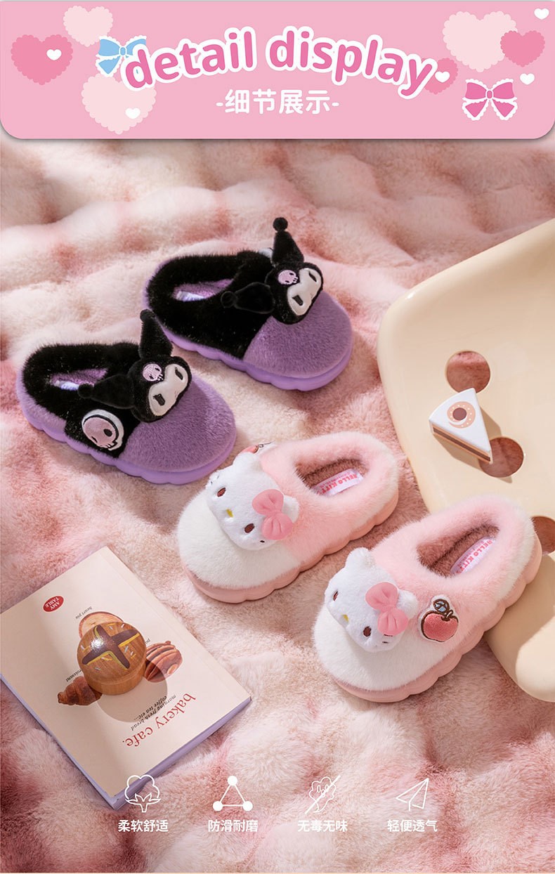 도매 산리오 어린이 면화 슬리퍼 세대 헬로 키티 쿨로 미 귀여운 만화 가을과 겨울 부모 자식 슬리퍼 여성