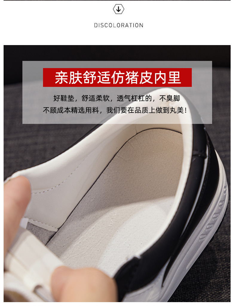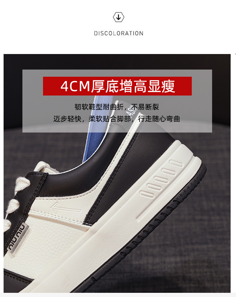 Colorblock 흰색 신발 여성의 2024 가을 새 가죽 통기성 두꺼운 바닥 얕은 입 레이스 업 학생 캐주얼 보드 신발 증가