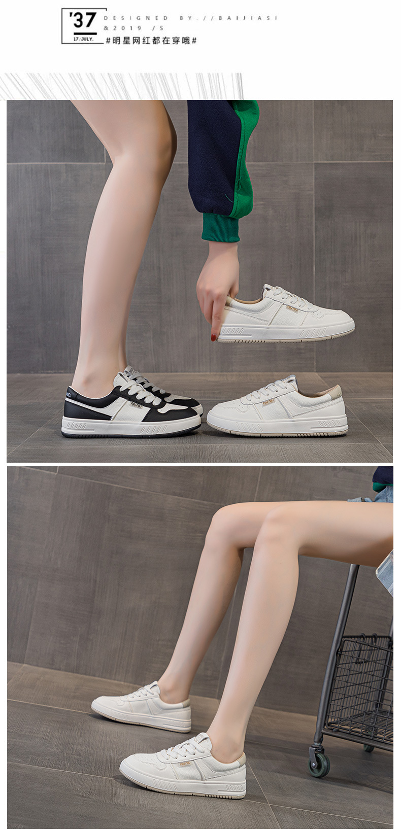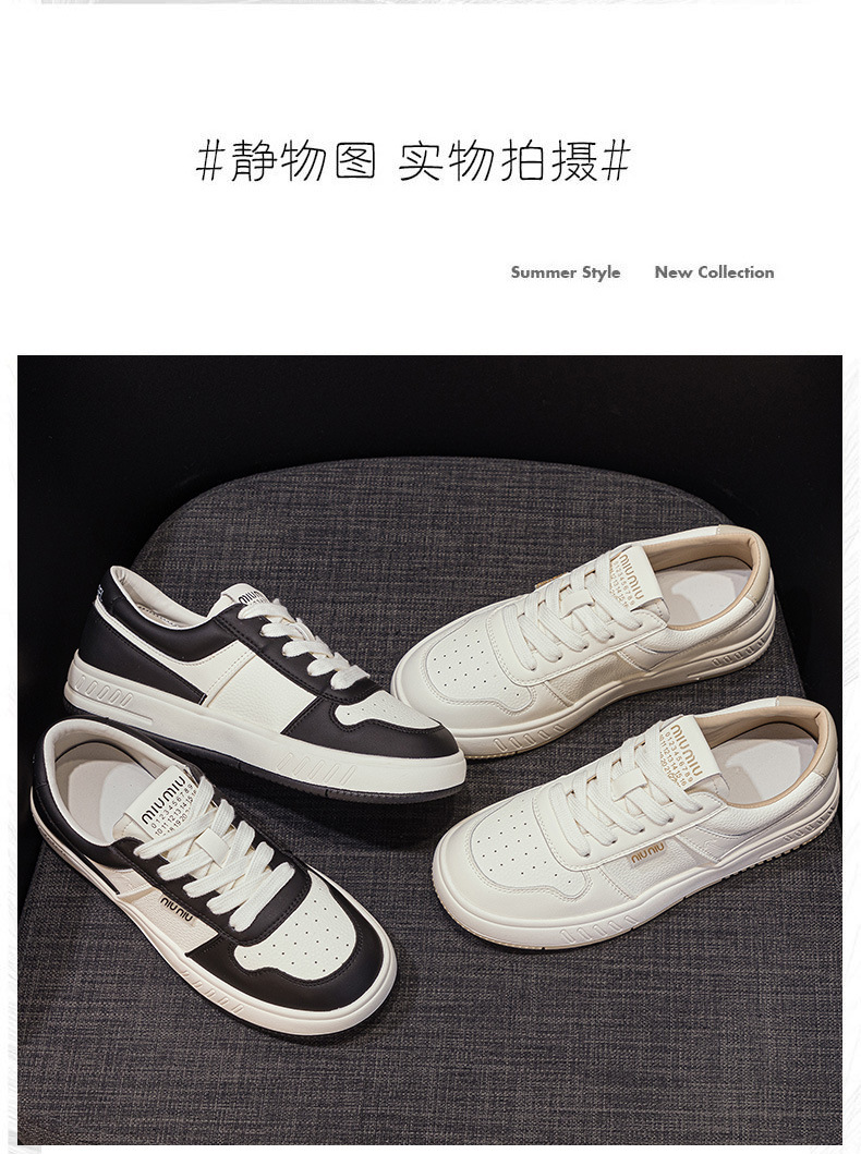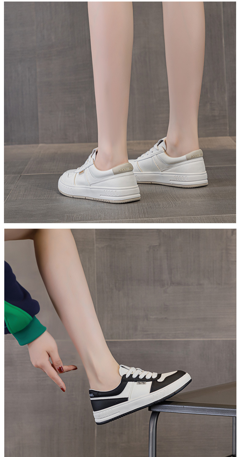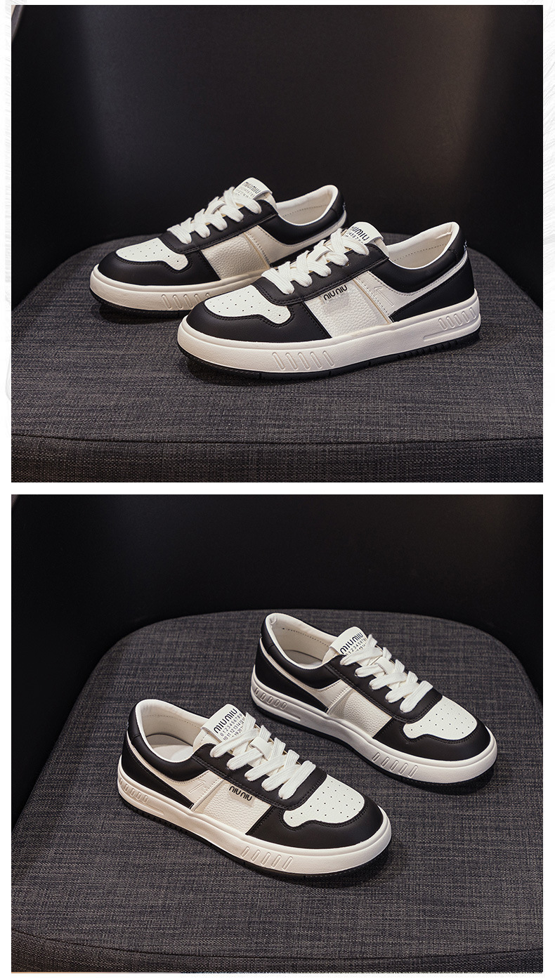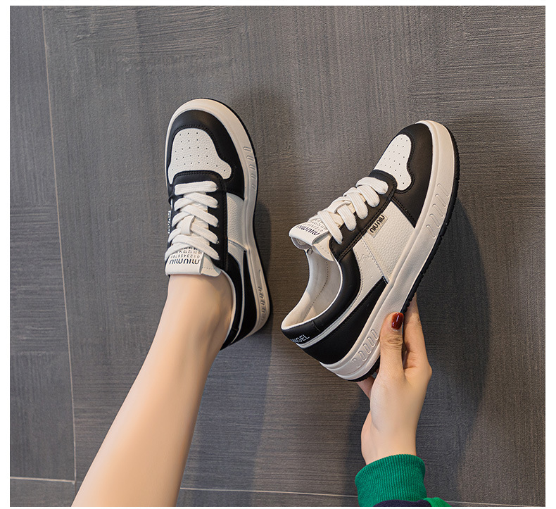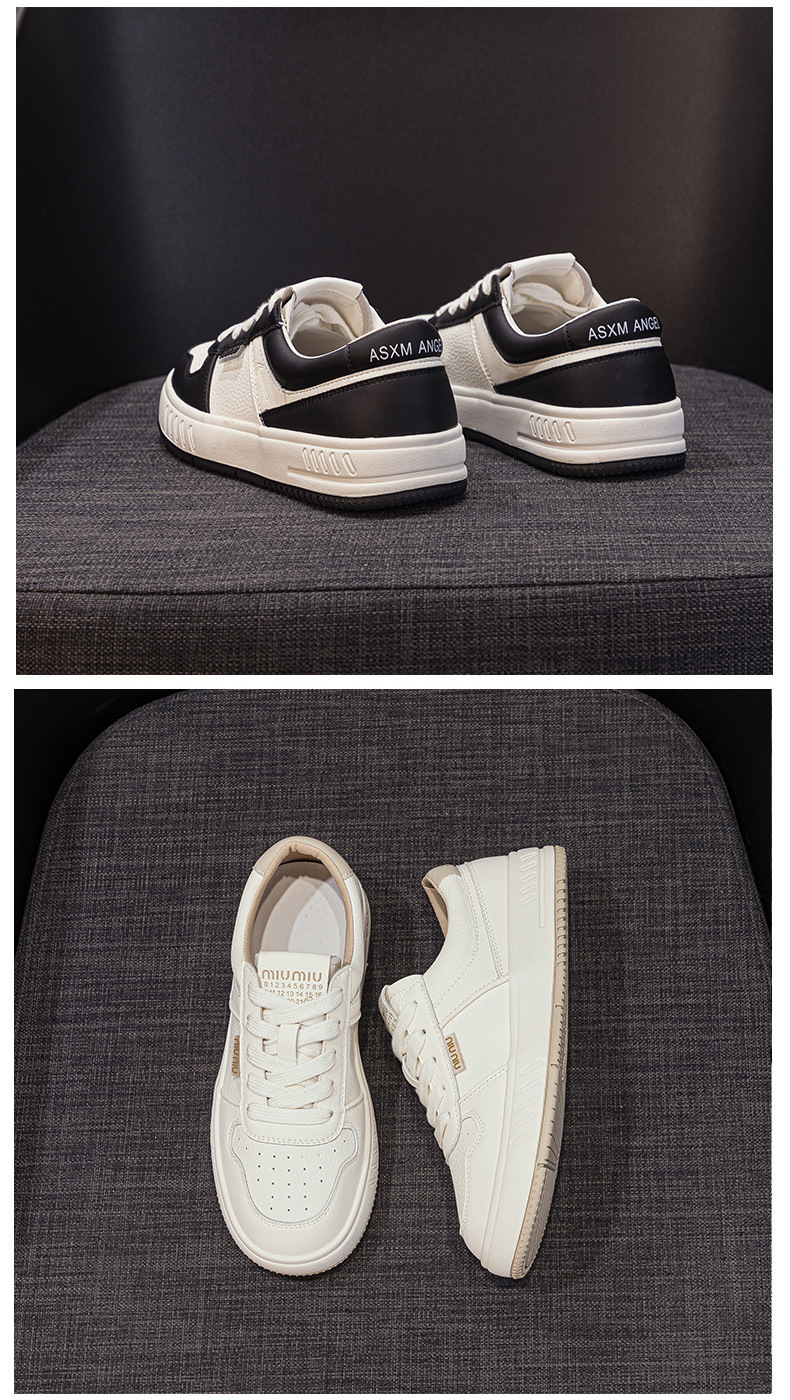 Colorblock 흰색 신발 여성의 2024 가을 새 가죽 통기성 두꺼운 바닥 얕은 입 레이스 업 학생 캐주얼 보드 신발 증가스토어 가기