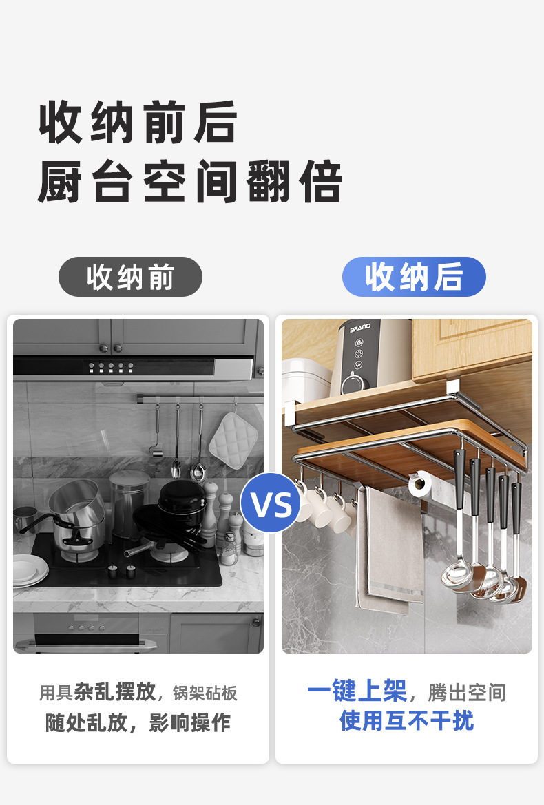 커팅 보드 팟 뚜껑 랙 커팅 보드 레이어드 스토리지 랙을위한 주방 교수형 스토리지 랙 펀치 프리 캐비닛 후크 랙스토어 가기
