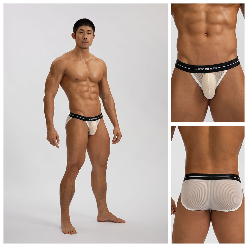 GTOPX MAN 남성 줄무늬 반투명 싱글 레이어 아이스 실크 얇은 U Convex 섹시한 낮은 허리 속옷 크로스 보더 브리프