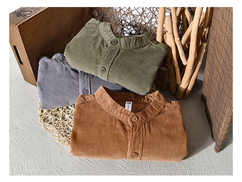 가을 느슨한 코듀로이 긴팔 셔츠 남자 일본식 레트로 칼라 올 매치 남자 순면 코트 셔츠 C12