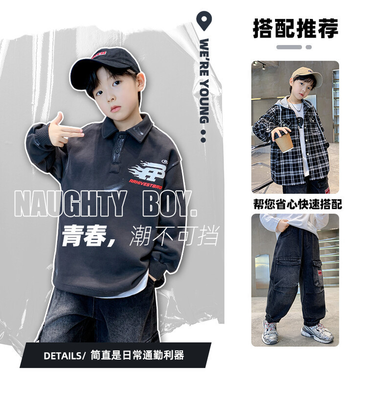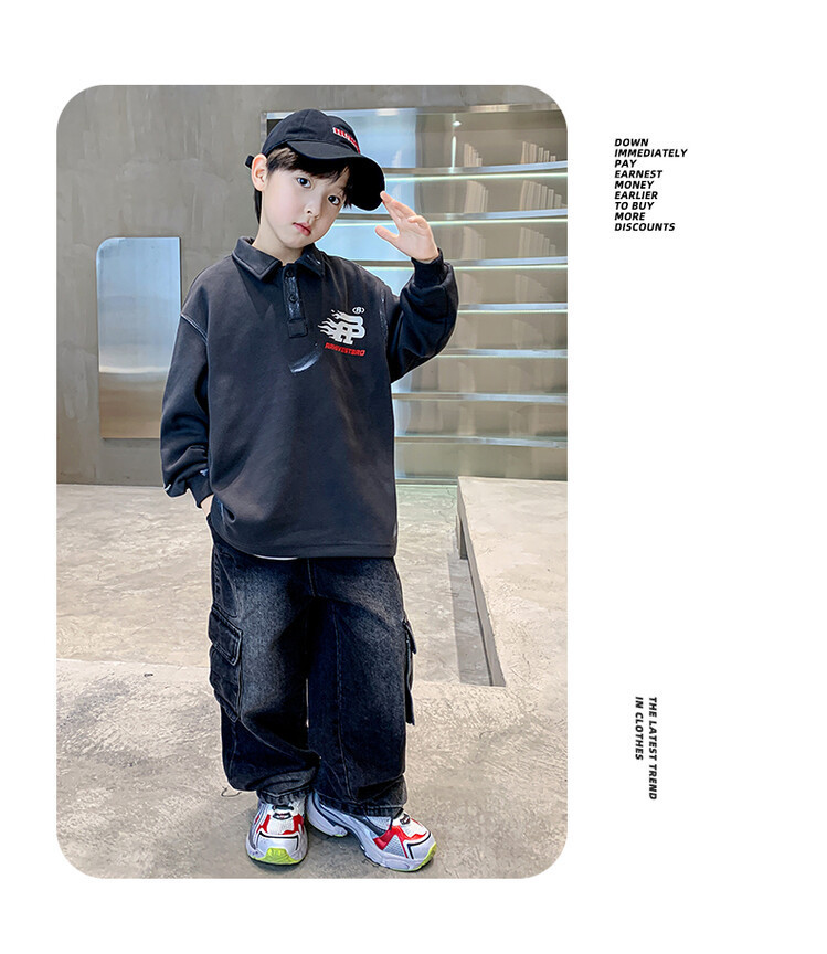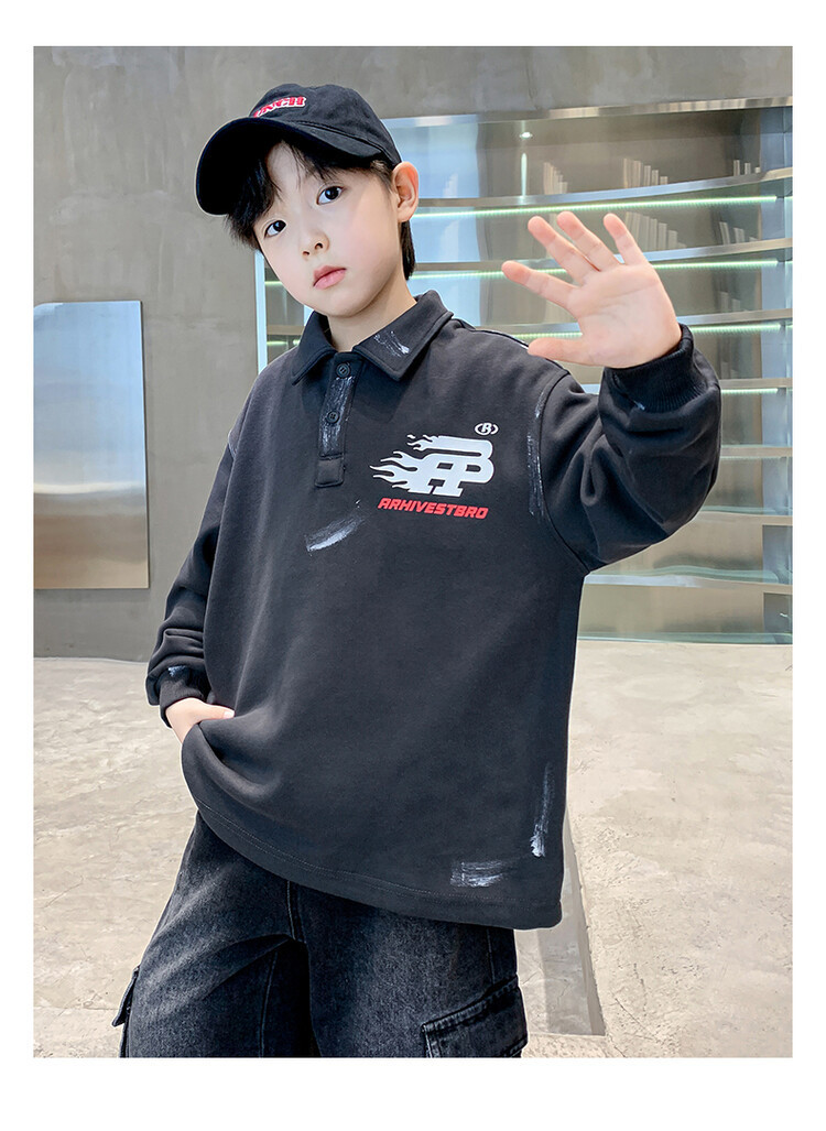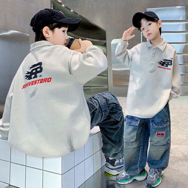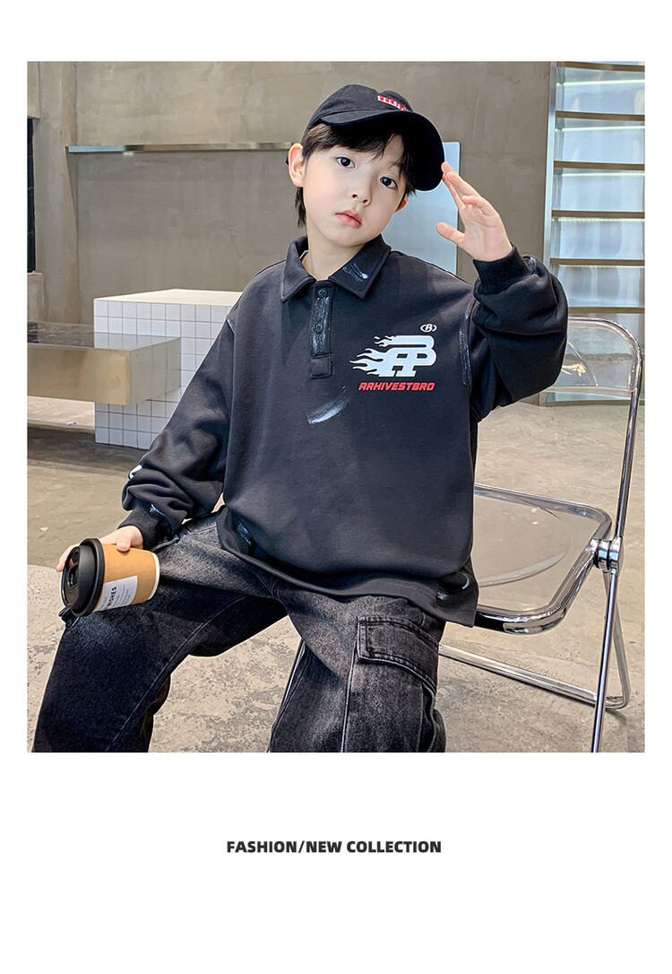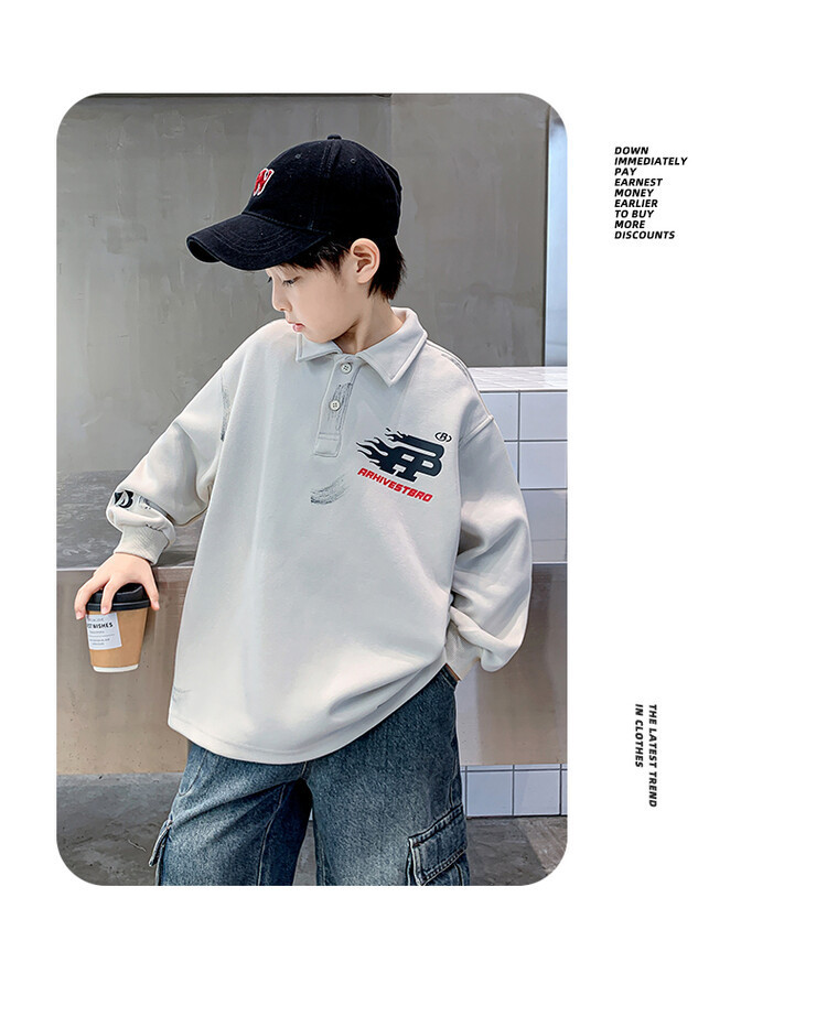 소년 옷깃 스웨터 긴 소매 봄 가을 어린이 한국 패션 POLO 셔츠 캐주얼 조커 코트 국경 도매