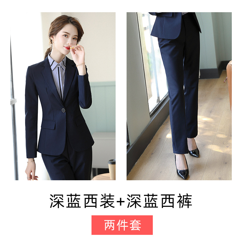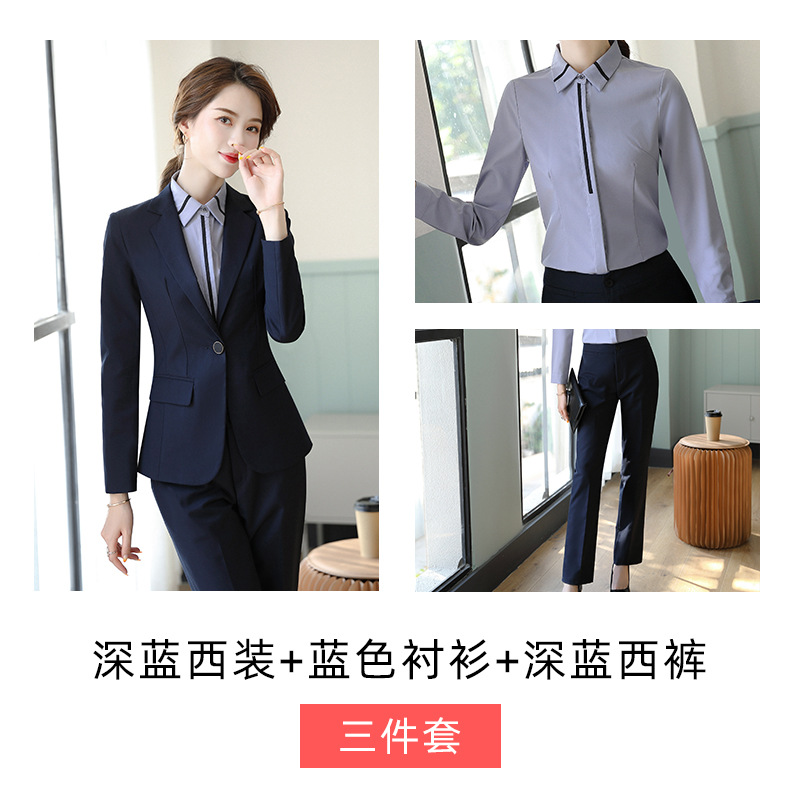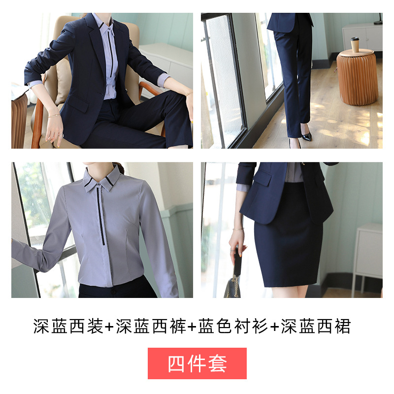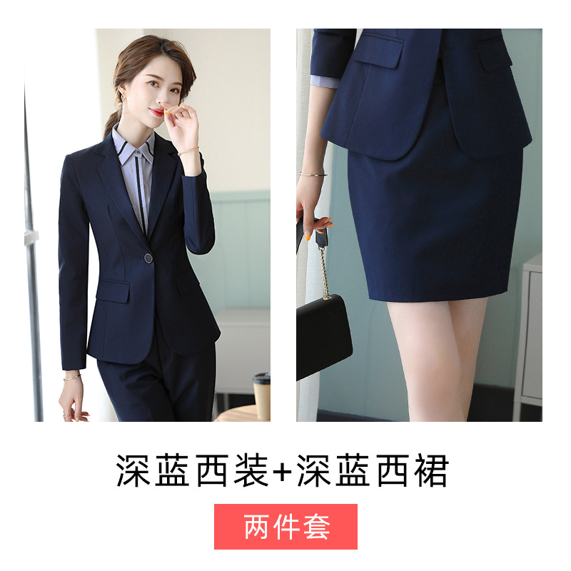 • 남색 정장 + 남색 바지 + 파란색 셔츠 + 남색 스커트
