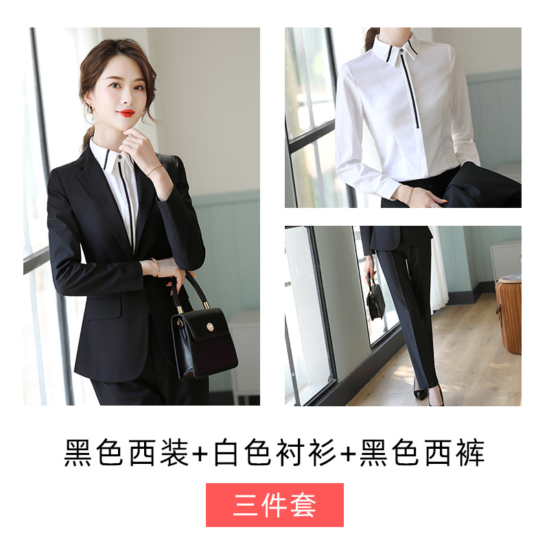 • 검은색 양복 + 검은색 바지 + 흰색 셔츠 + 검은색 스커트