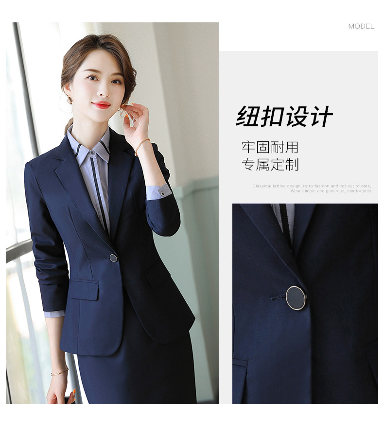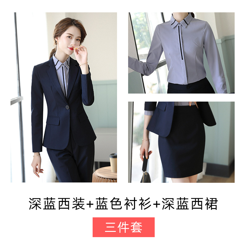 • 남색 정장 + 파란색 셔츠 + 남색 스커트