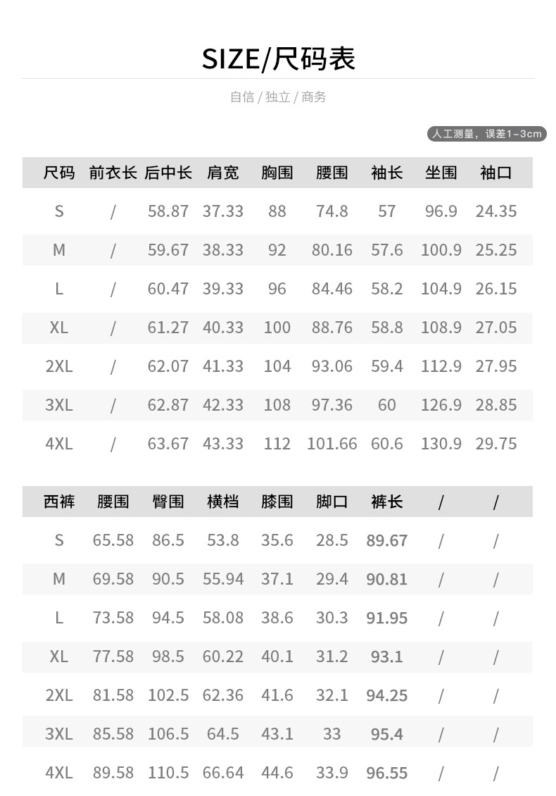• 남색 정장 + 파란색 셔츠 + 남색 바지