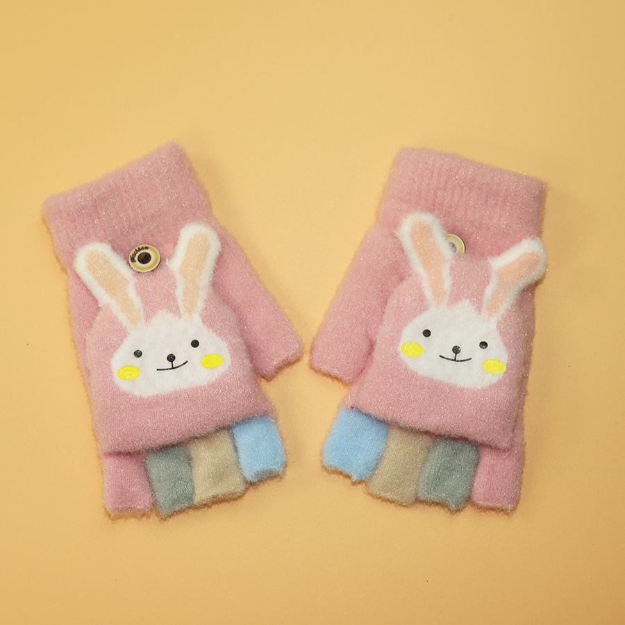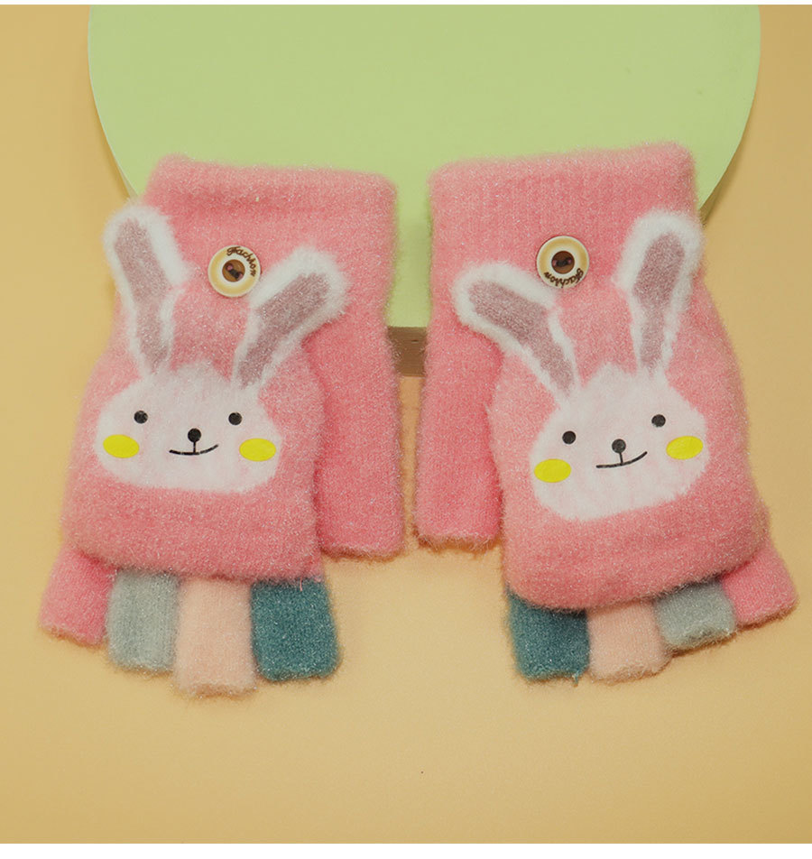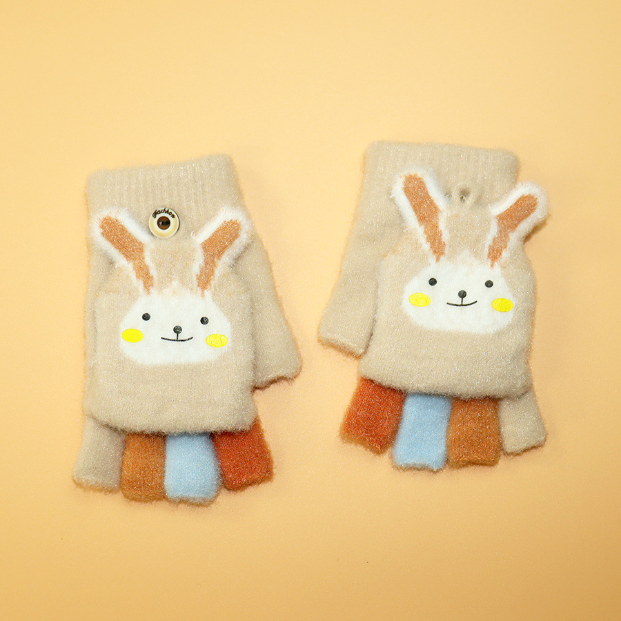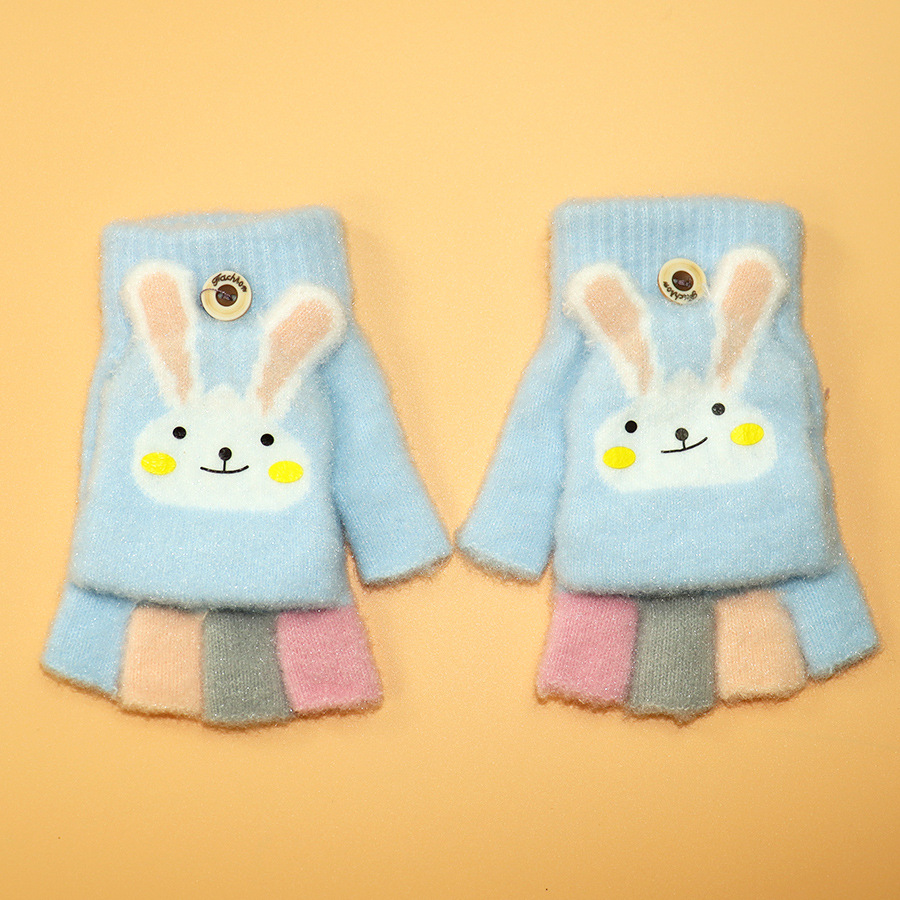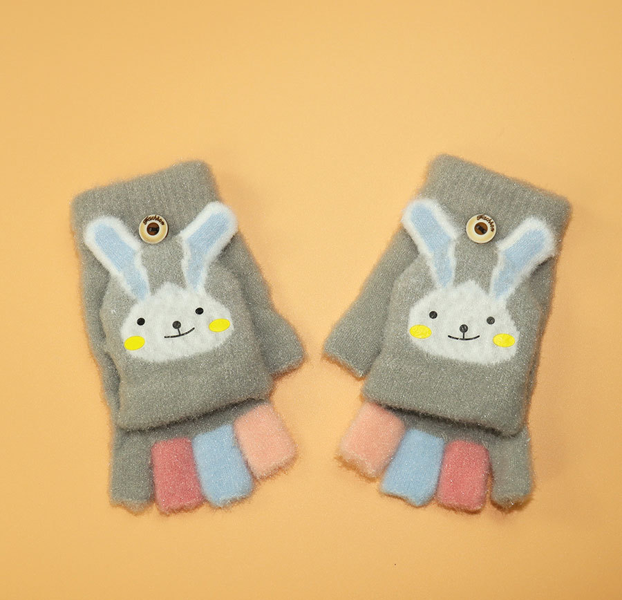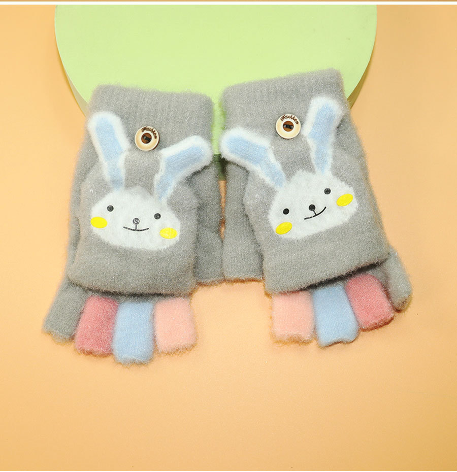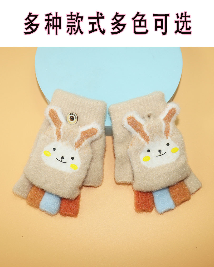 어린이 플립 장갑 가을과 겨울 소년 반 손가락 따뜻한 귀여운 초등학생 니트 이중 목적 장갑 도매
