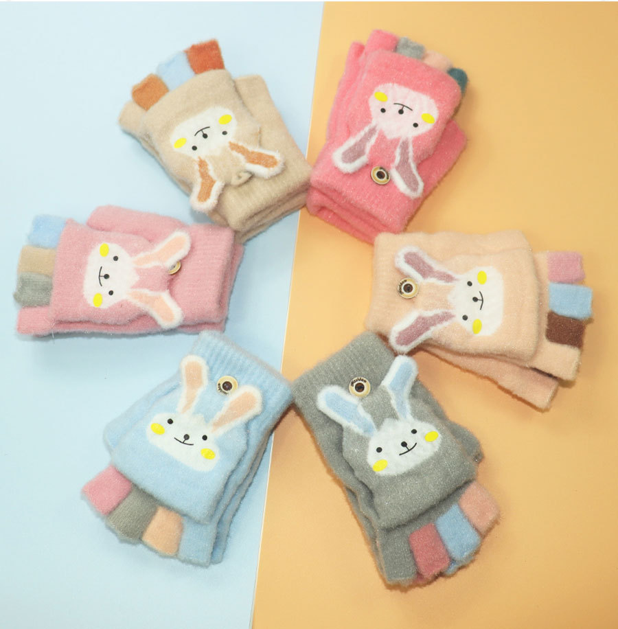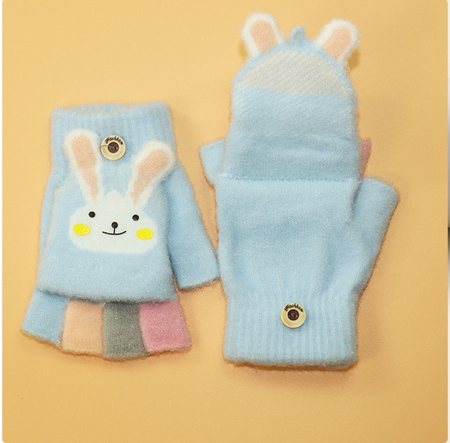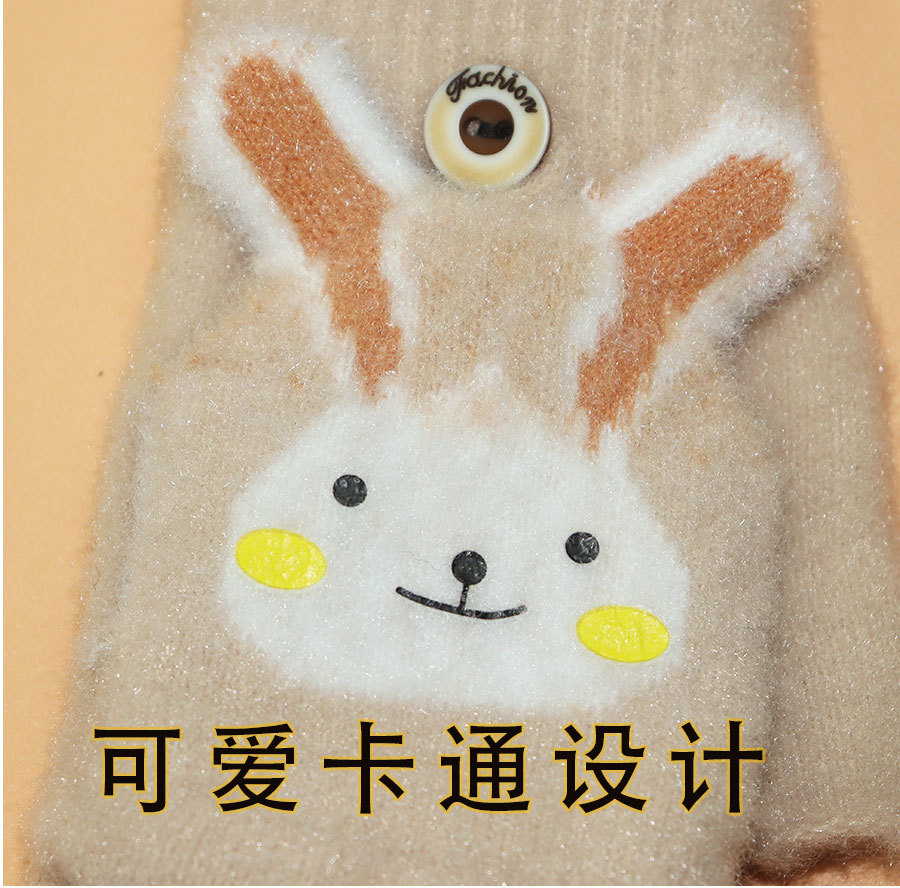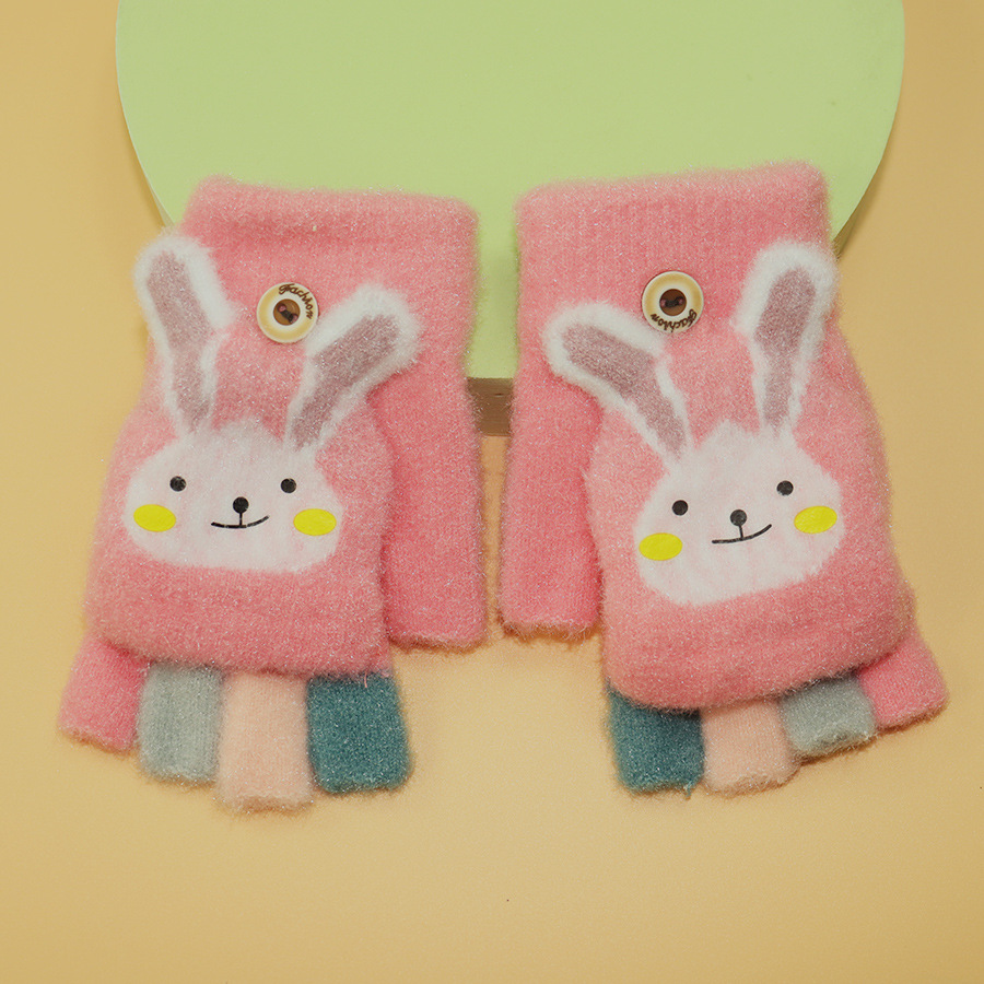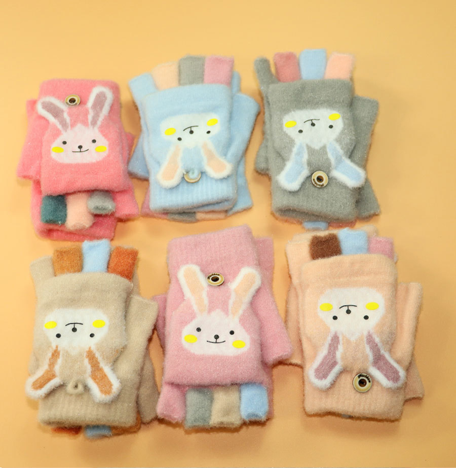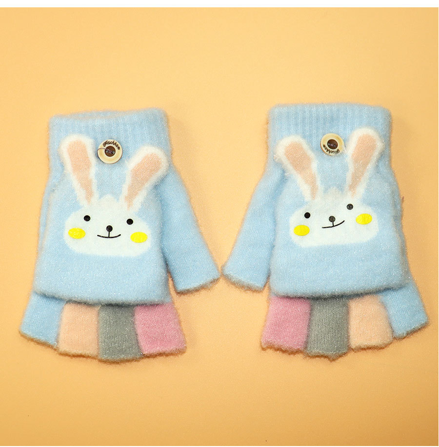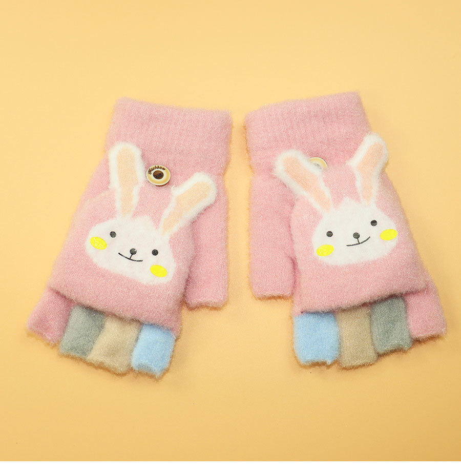 어린이 플립 장갑 가을과 겨울 소년 반 손가락 따뜻한 귀여운 초등학생 니트 이중 목적 장갑 도매
