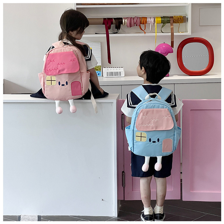 어린이 가방 2024 새로운 만화 작은 집 유치원 학교 가방 귀여운 캐주얼 소년과 소녀 나들이 작은 배낭