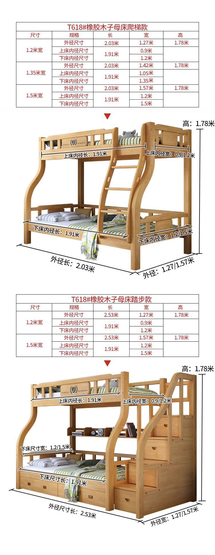 • 0.9/1.2* 1.9m (매트리스 포함)