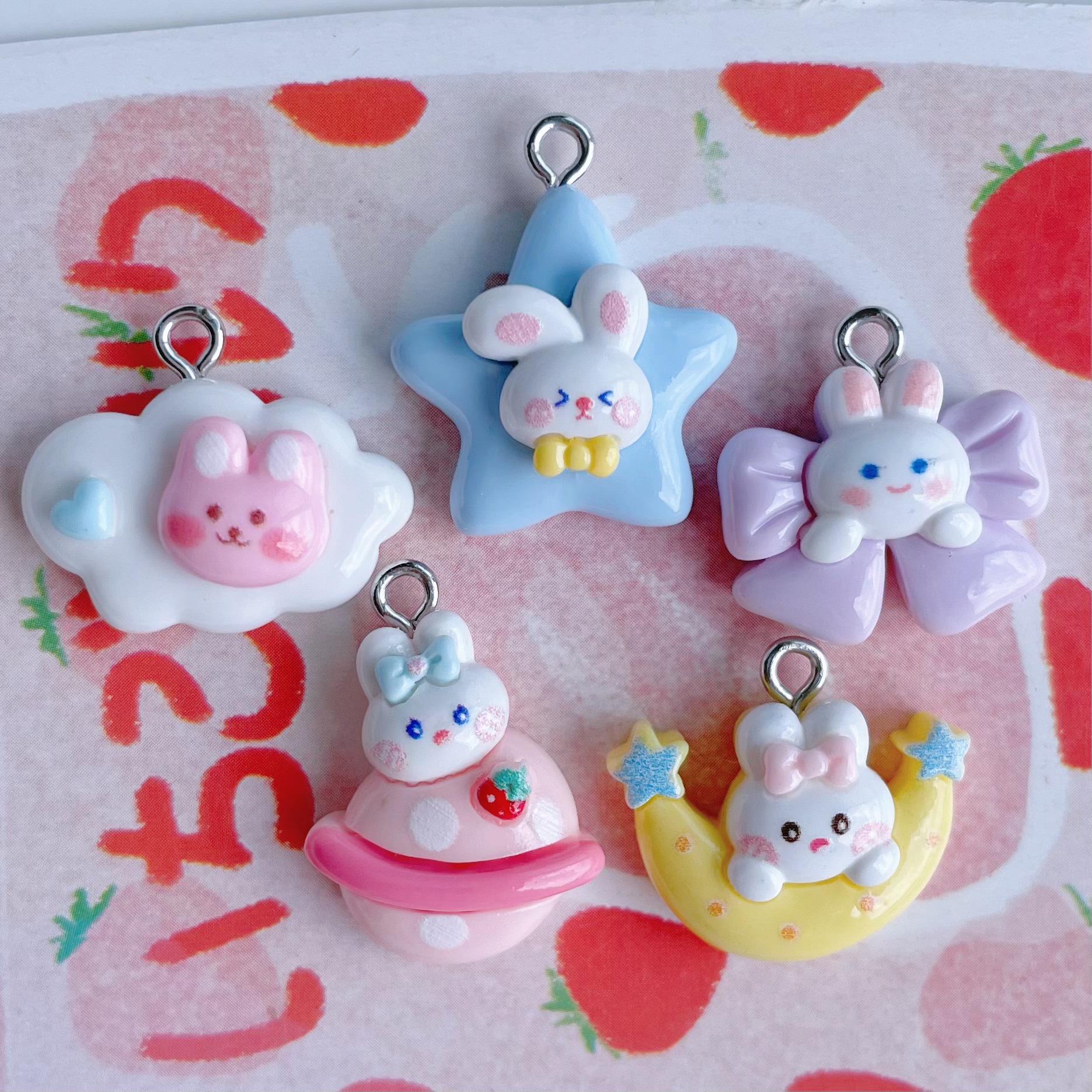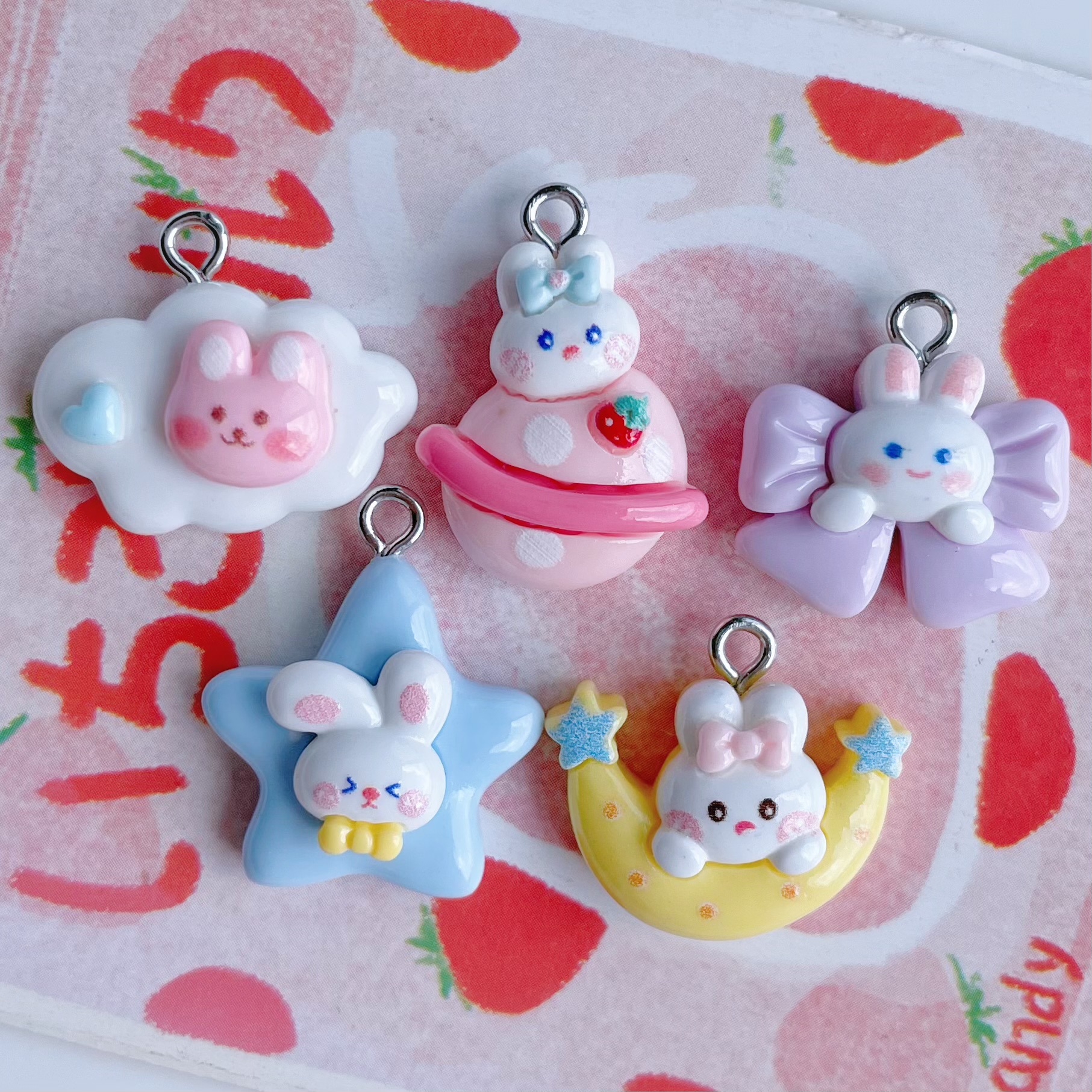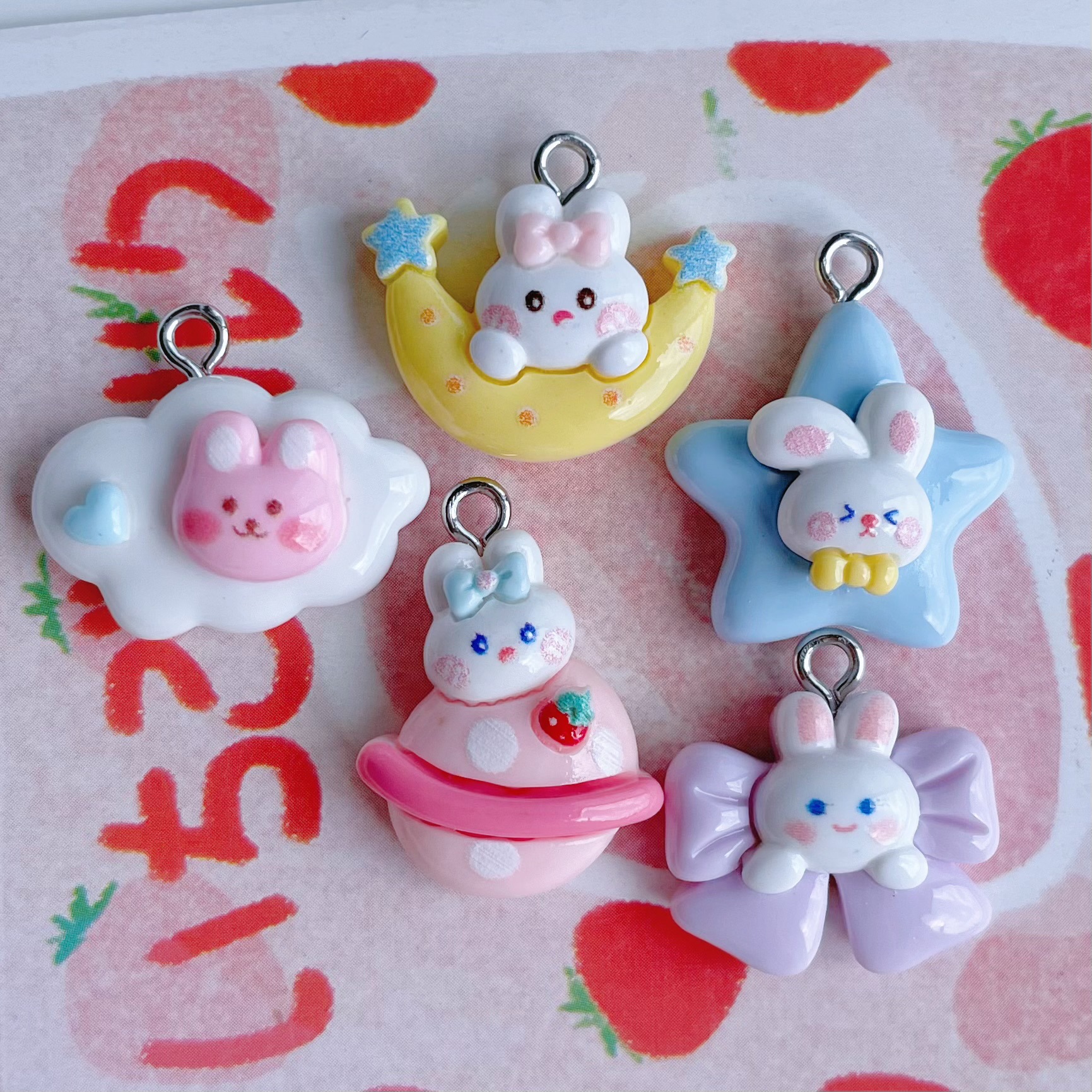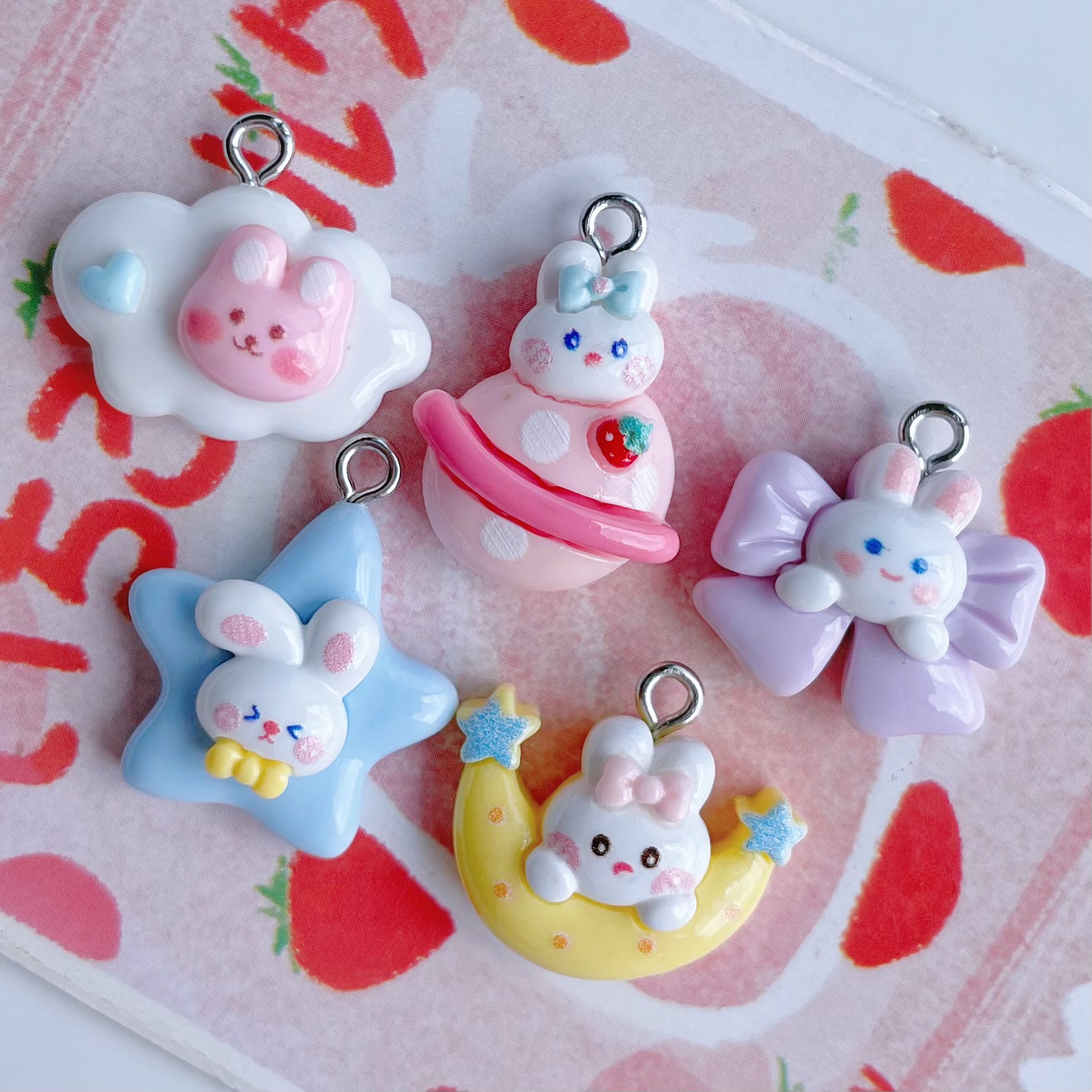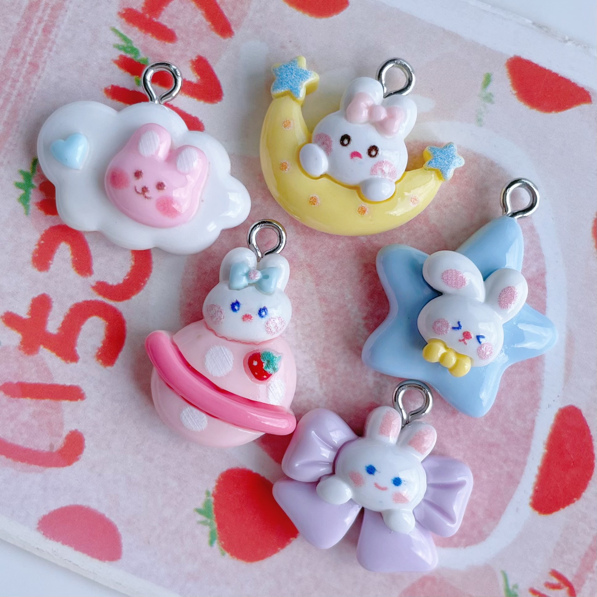 귀여운 만화 달 구름 행성 토끼 펜던트 DIY 보석 펜던트 귀걸이 팔찌 키 체인 액세서리 소재스토어 가기