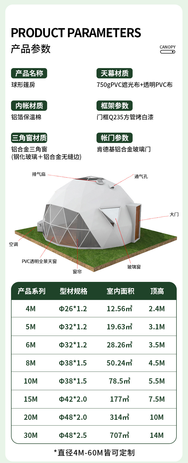 • 캠프 | 명승지 | 문화 및 여행 프로젝트 구형 텐트 맞춤 제작/ ㎡ |