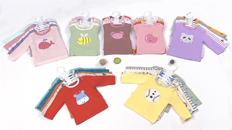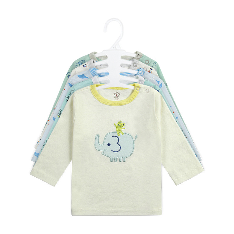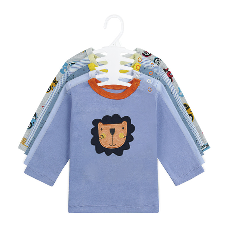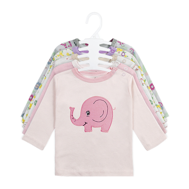 2024 대외 무역 도매 국경 베스트셀러 아마존 유럽과 미국 아기 아동복 면화 긴 소매 라운드 넥 티셔츠 5 개 세트