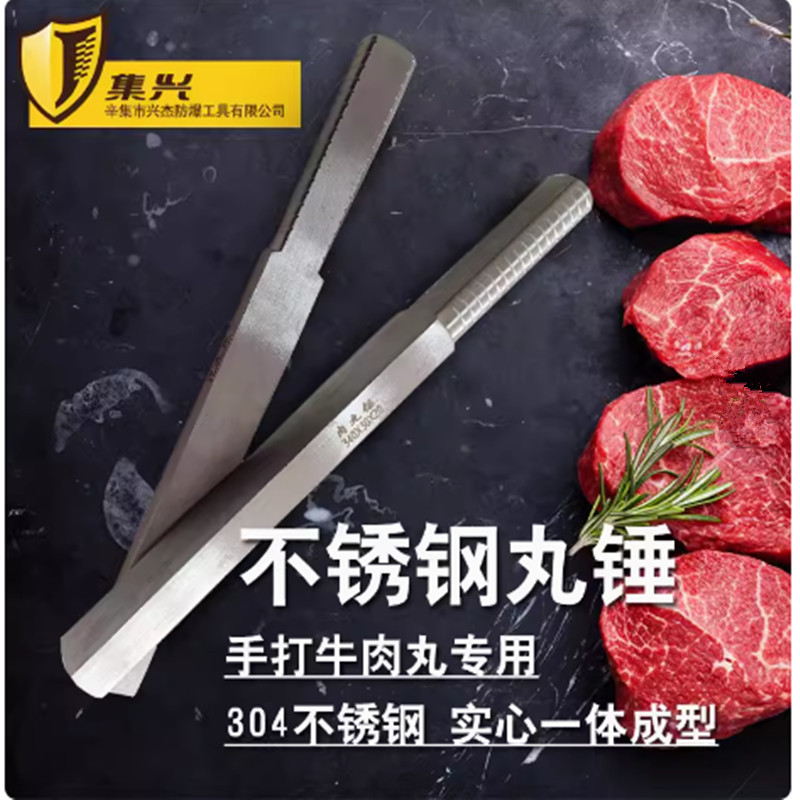 차오산 핸드 비프 볼 특수 해머 304 스테인레스 스틸 바 해머 쇠고기 공 고기 바 벌금 고기 해머 노킹 볼 아이언 해머