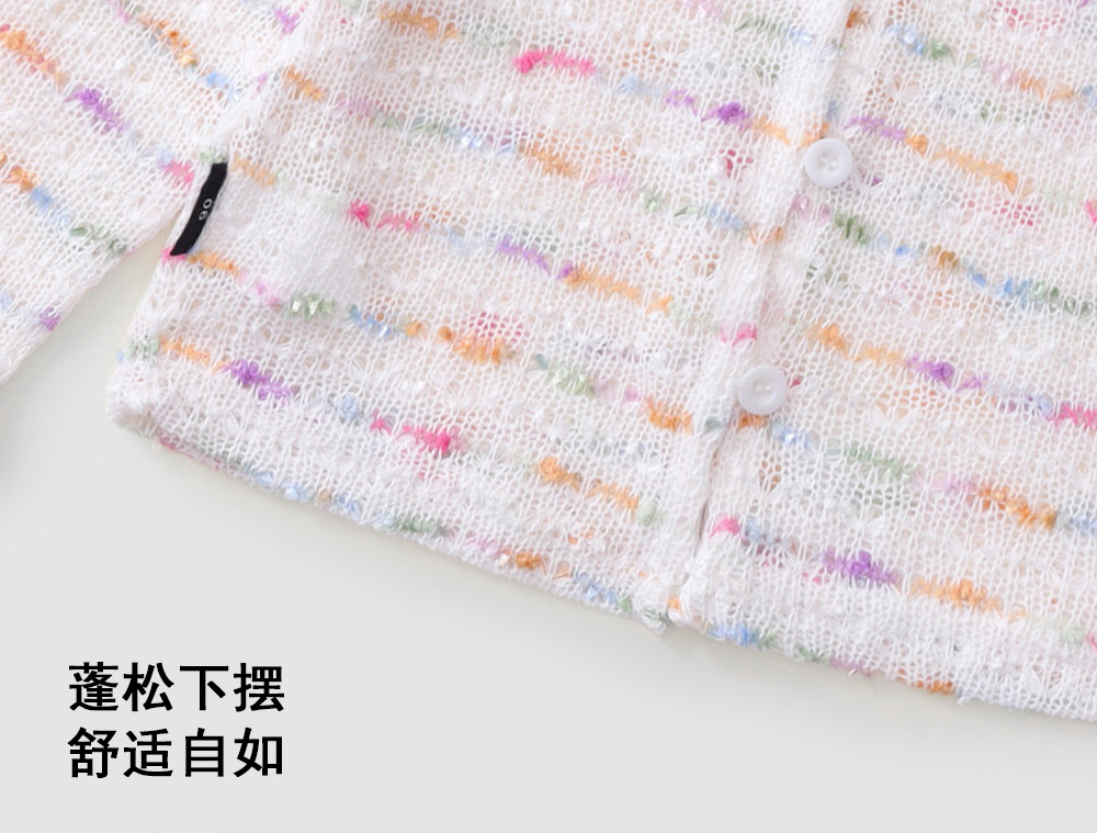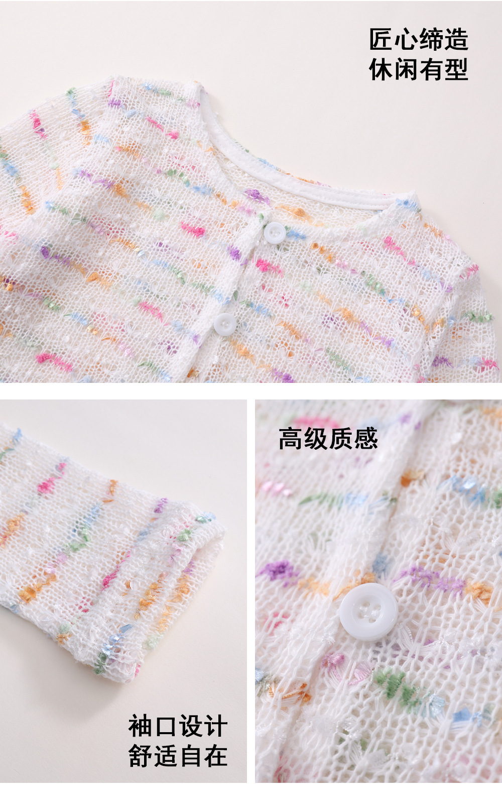 MDD 여자 카디건 2024 여름 새로운 어린이 바느질 긴 소매 아기 부드러운 상단 태양 보호 옷 에어컨 셔츠