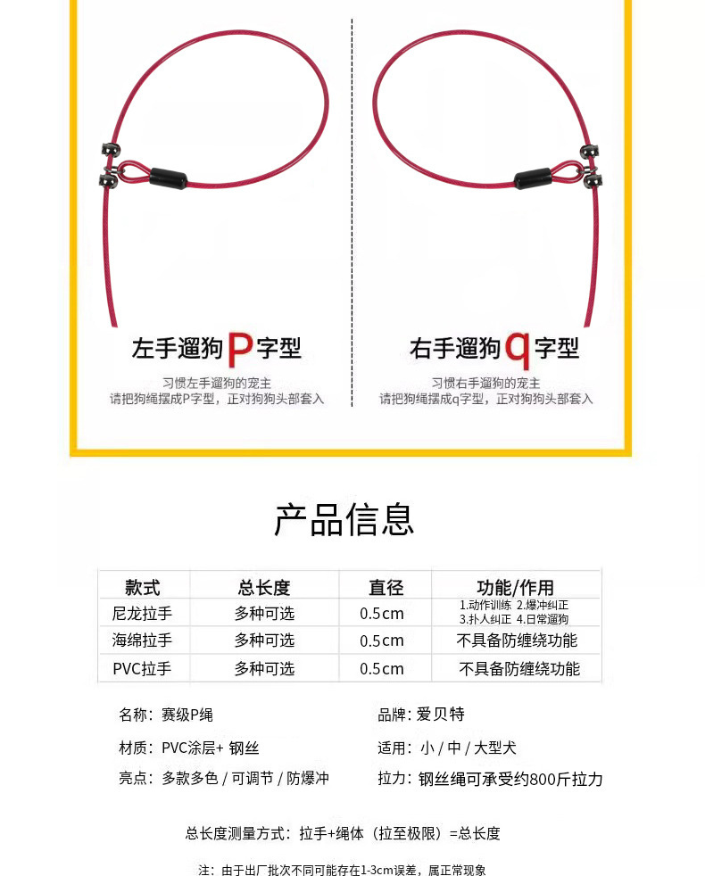 방폭 P 로프 대형 개 가죽 끈 훈련 개 체인 와이어 로프 소형, 중형 및 대형 개 산책 로프 물림 방지 P 체인스토어 가기