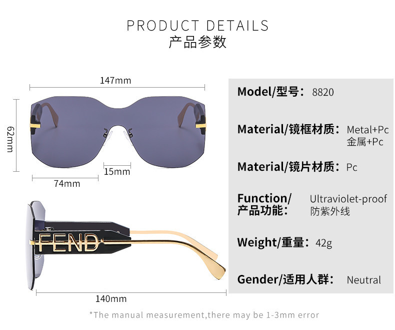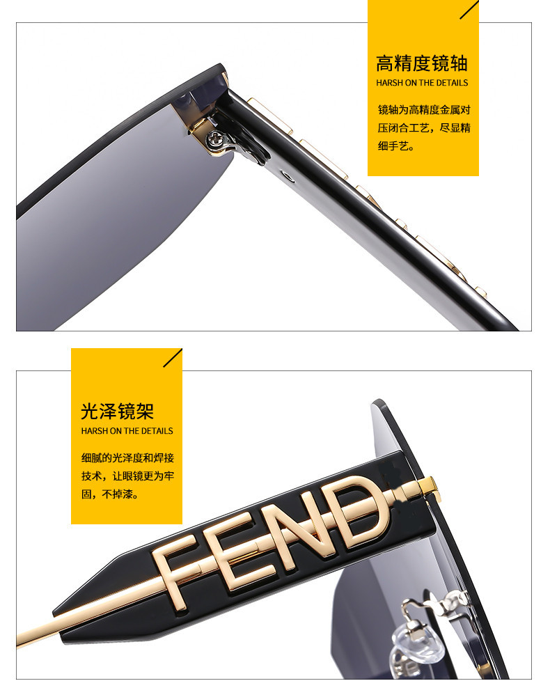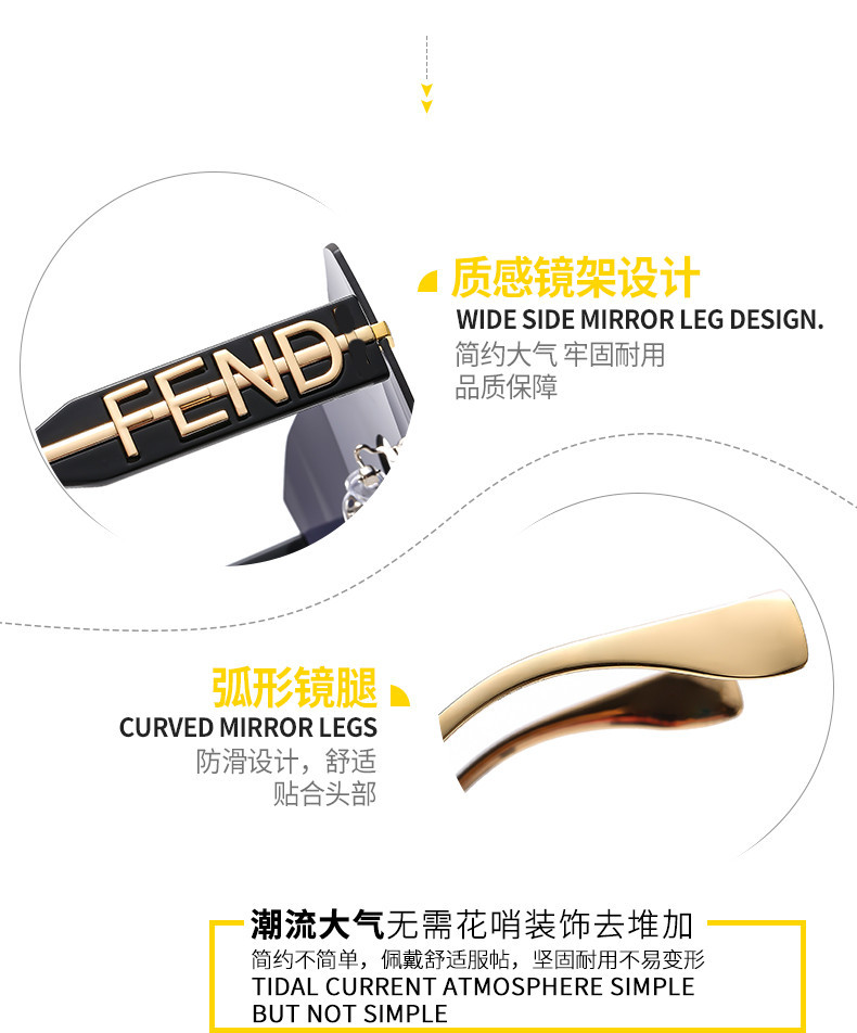 新款欧美FE字母腿太阳镜 F家时尚女士眼镜金属无框连体片个性墨镜스토어 가기