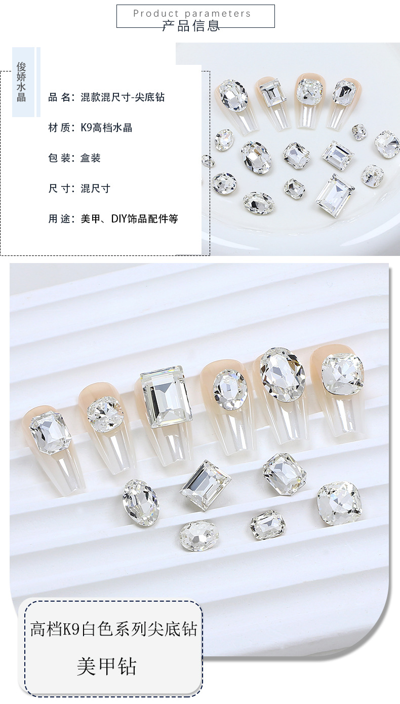 Dongzhou 크리스탈 화이트 네일 아트 다이아몬드 폭발 K9 크리스탈 락 캔디 지적 바닥 다이아몬드 비둘기 계란 DIY 라운드 다이아몬드 네일 아트 쥬얼리스토어 가기