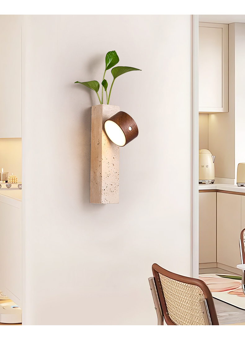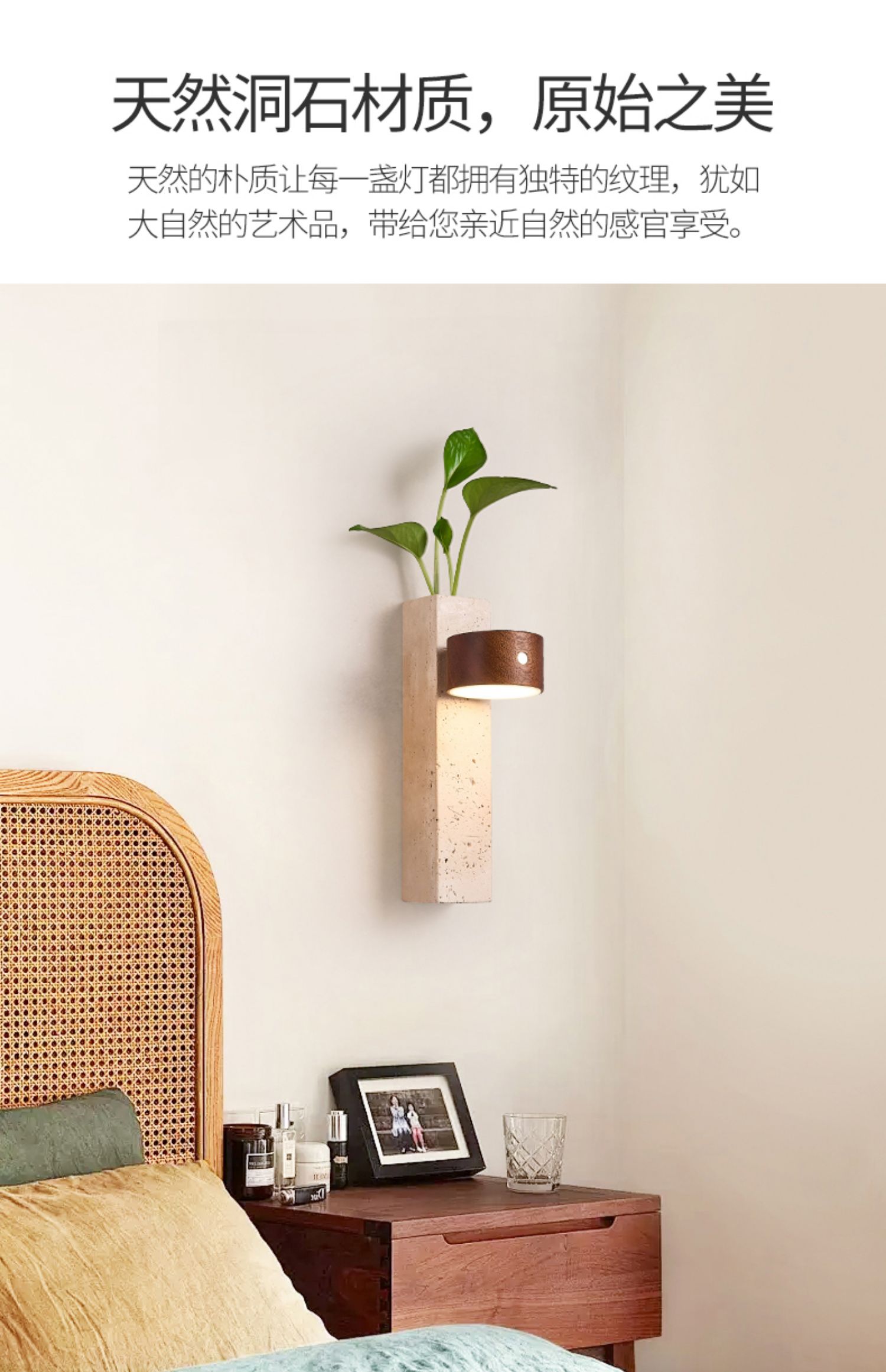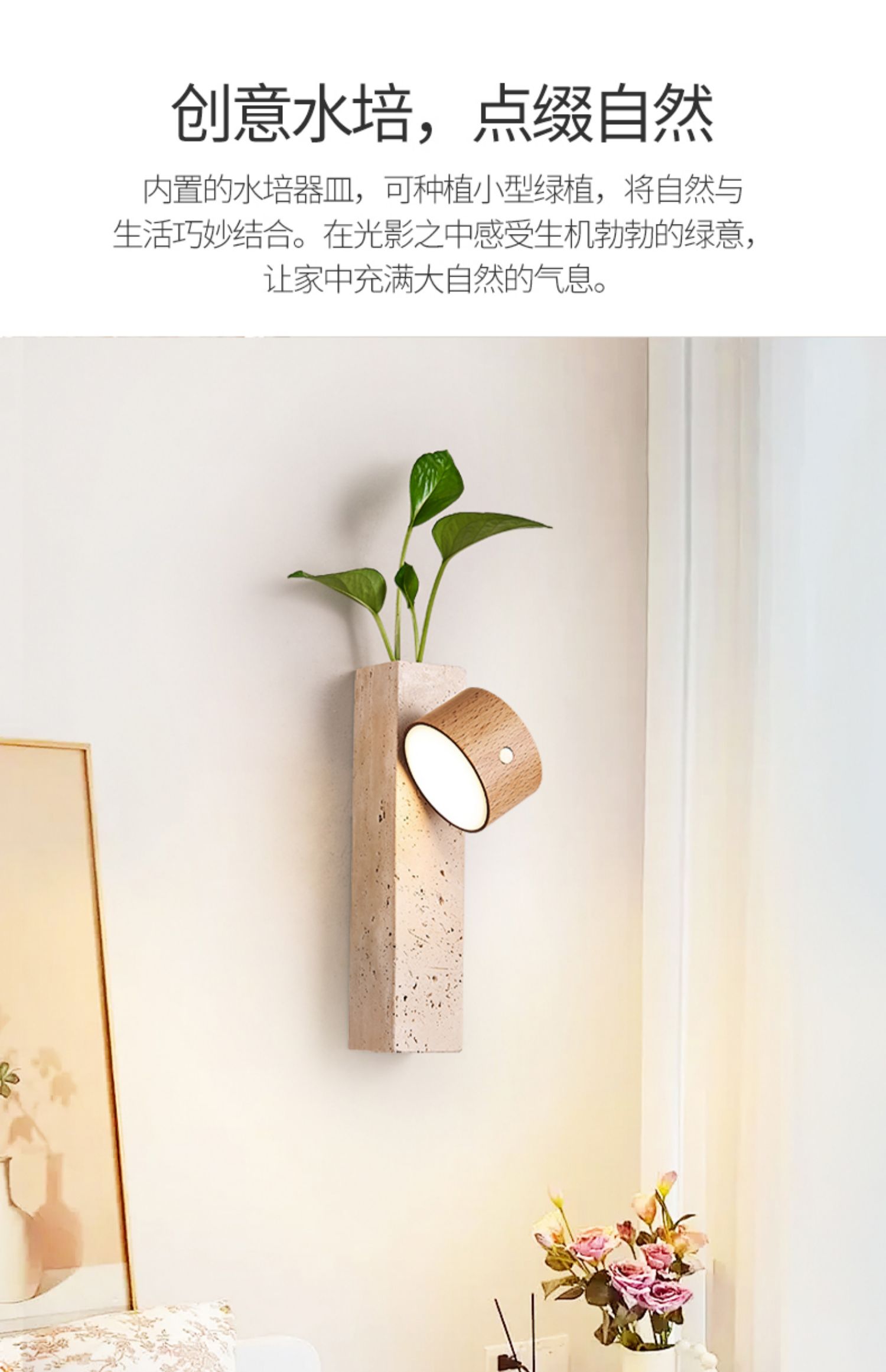 충전식 벽 램프 배선이없는 자기 야간 배선-무료 중세 복고풍 수경 녹색 식물 벽 램프 침대 옆 수면 램프