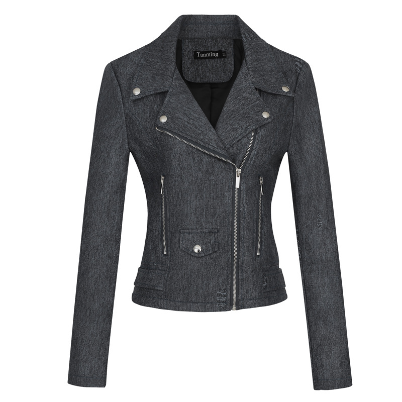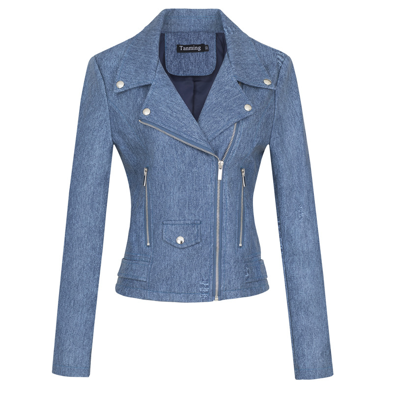 공장 도매 유럽과 미국의 창조적 인 데님 패턴 가죽 코트 패션 유행 여성 가죽 자켓 가죽스토어 가기