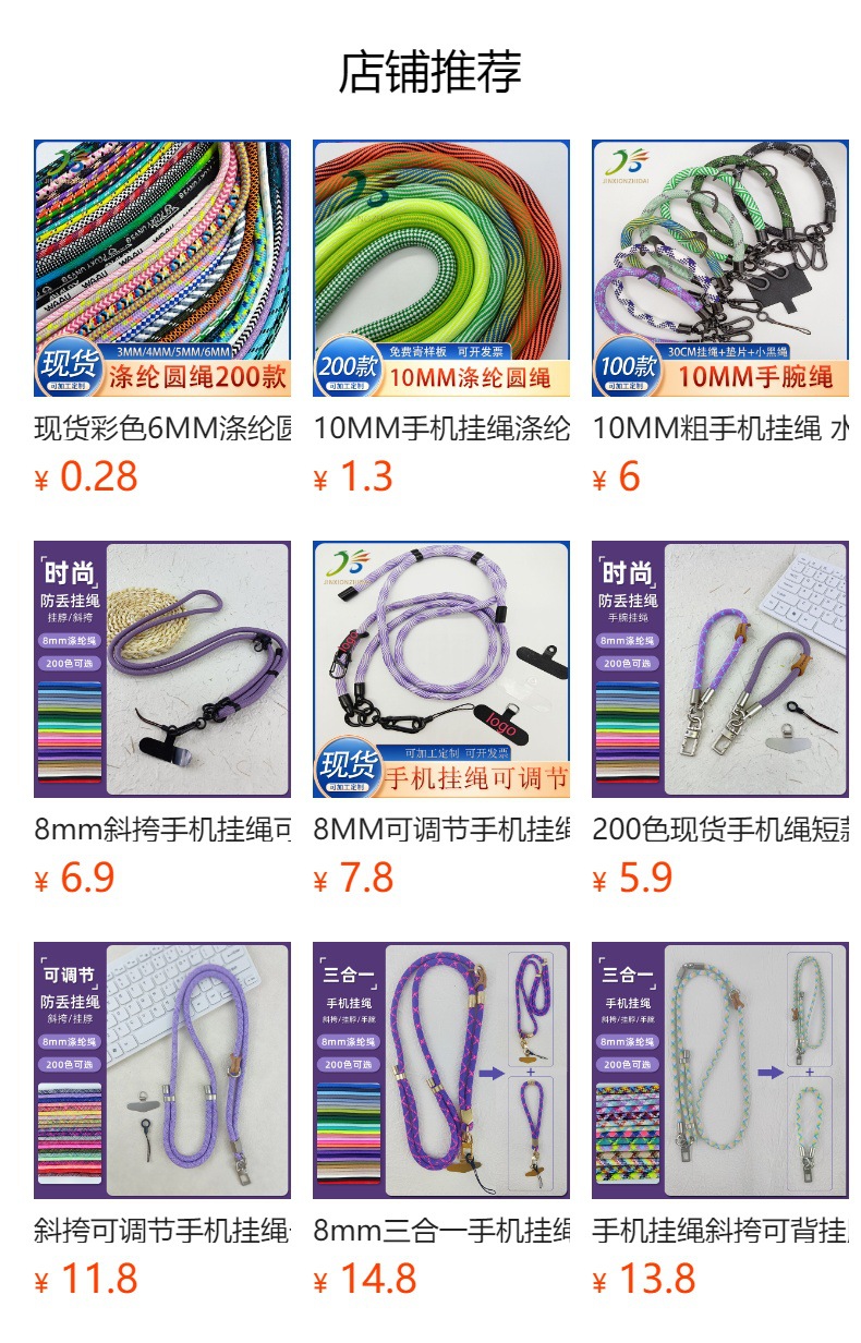 手机挂绳/手腕绳成品:绳子200色可选,支持搭配任意配件,按需定制成品,快速发货!