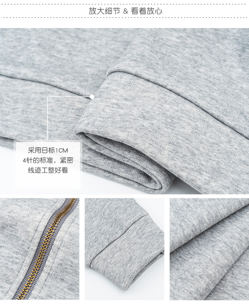 高端美式高街廓形纯色百搭拉链开衫立领大码宽松卫衣外套男式夹克