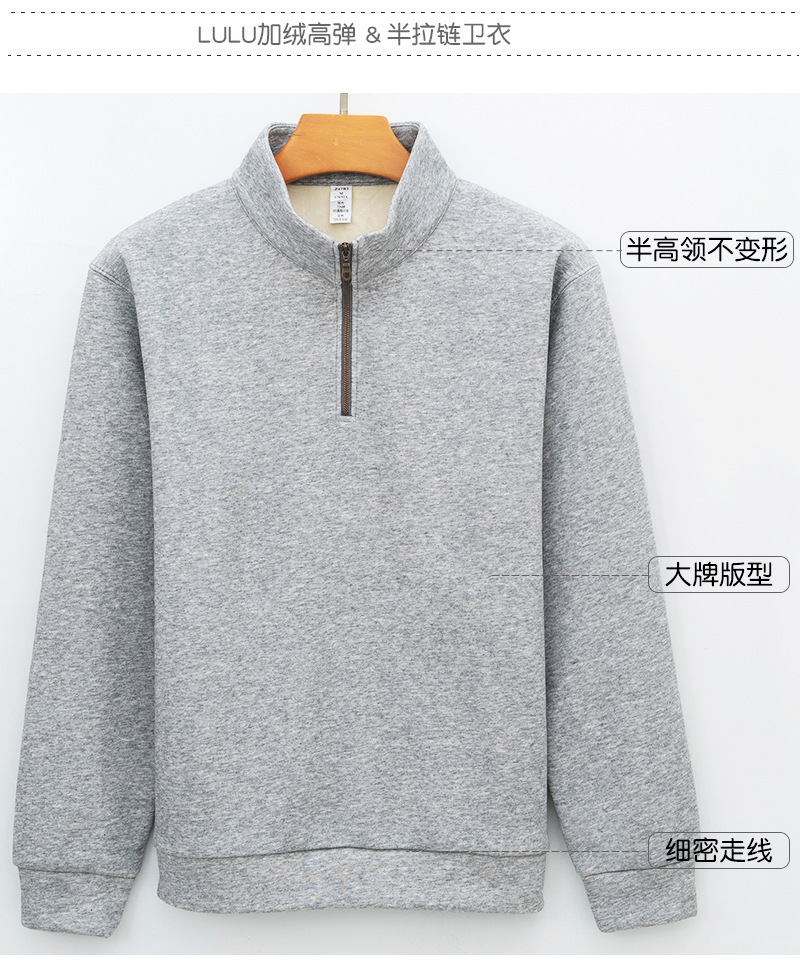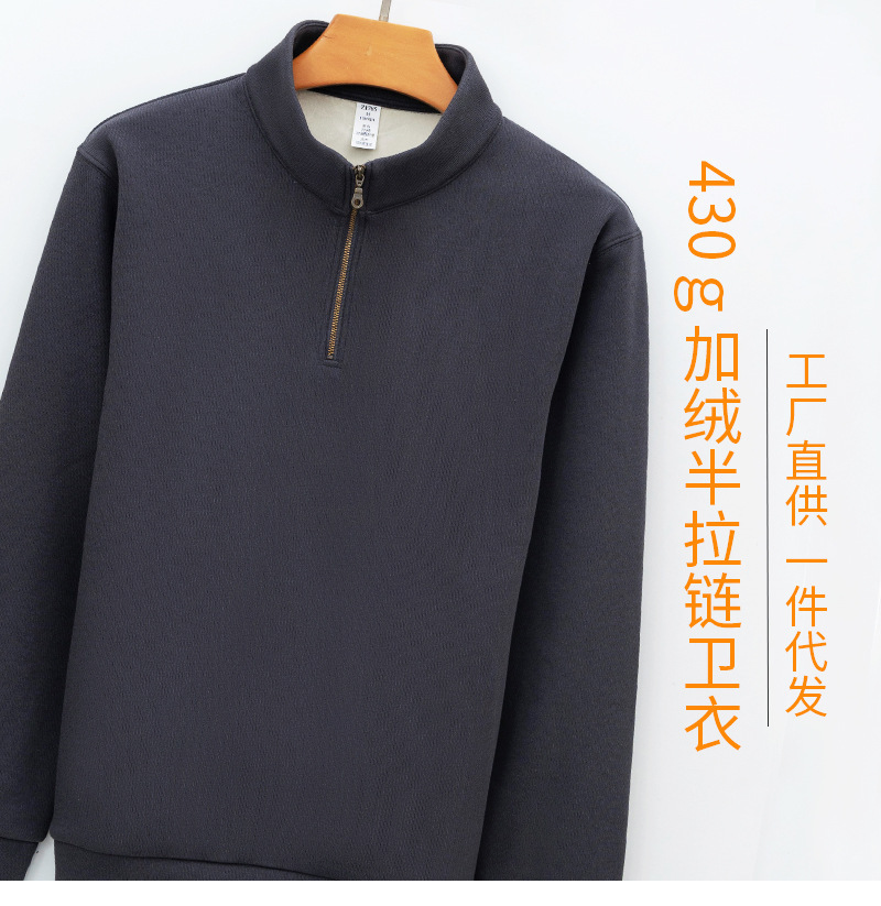 高端430g加绒半拉链卫衣宽松新疆棉毛衣男装长袖免烫保暖卫衣男