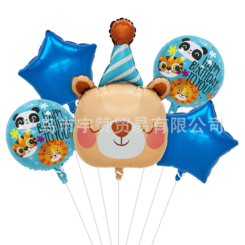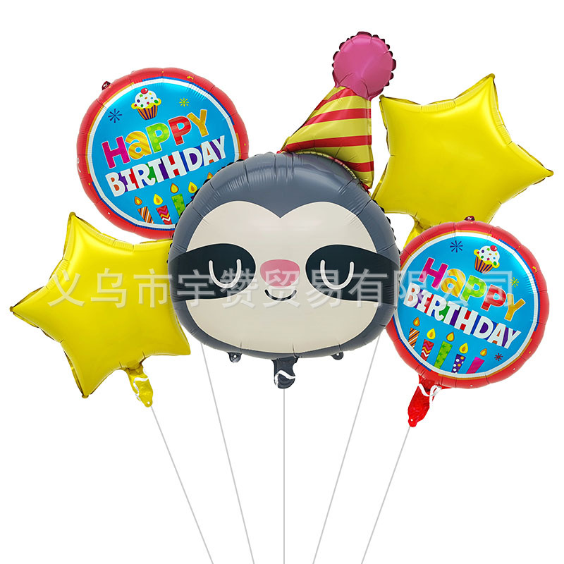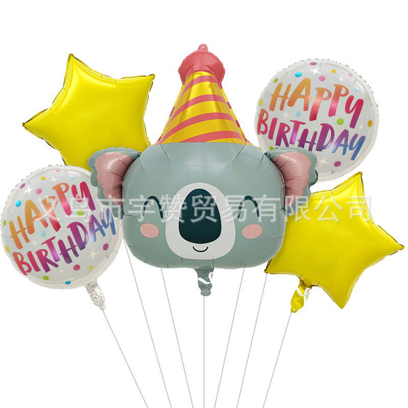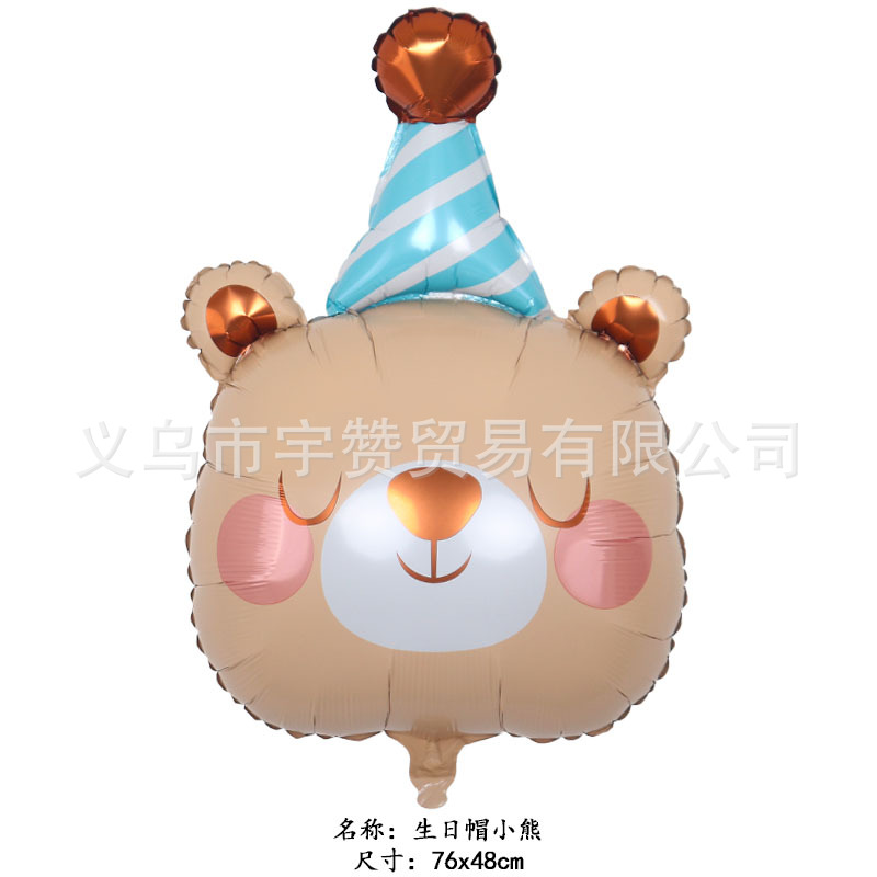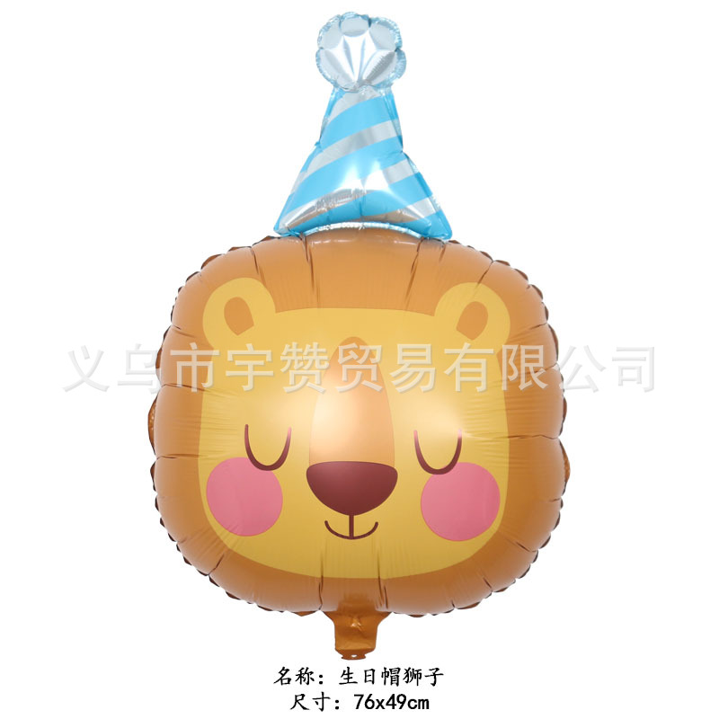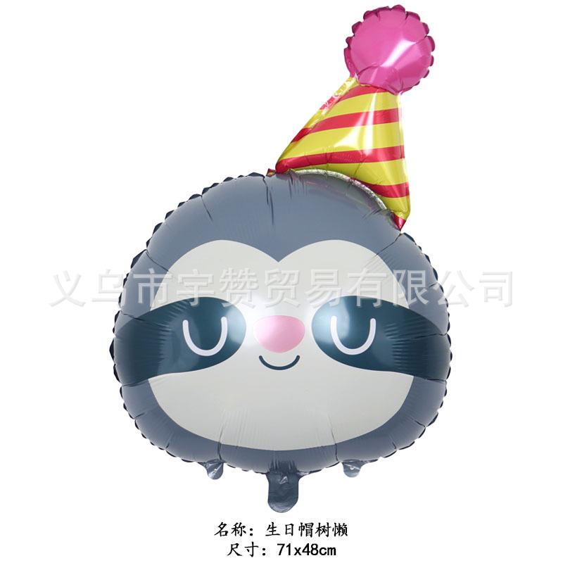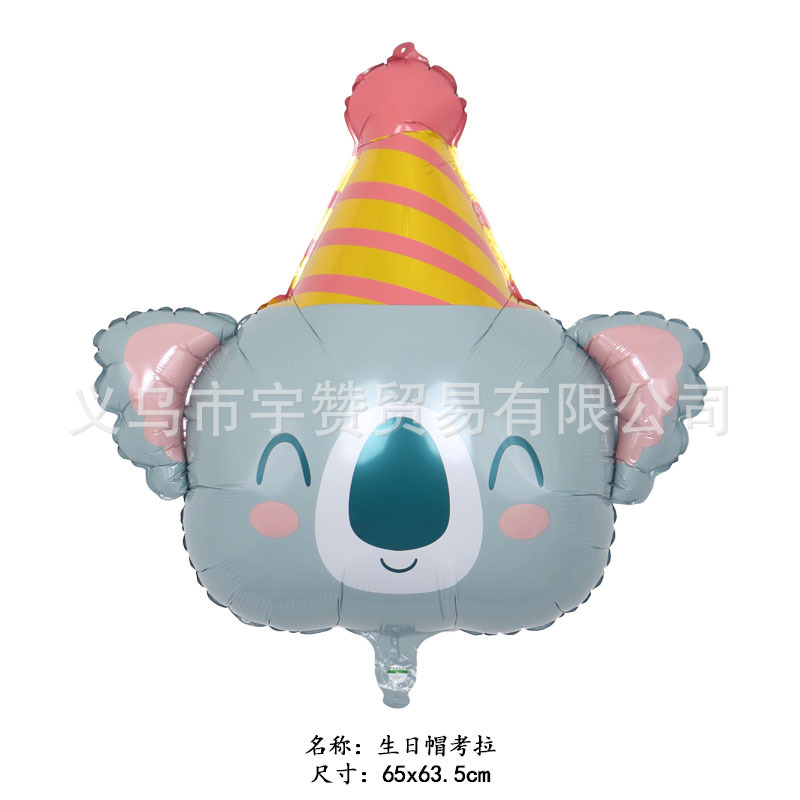 새로운 만화 생일 모자 모양 개구리 코알라 나무늘보 사자 동물 머리 알루미늄 필름 풍선 파티스토어 가기
