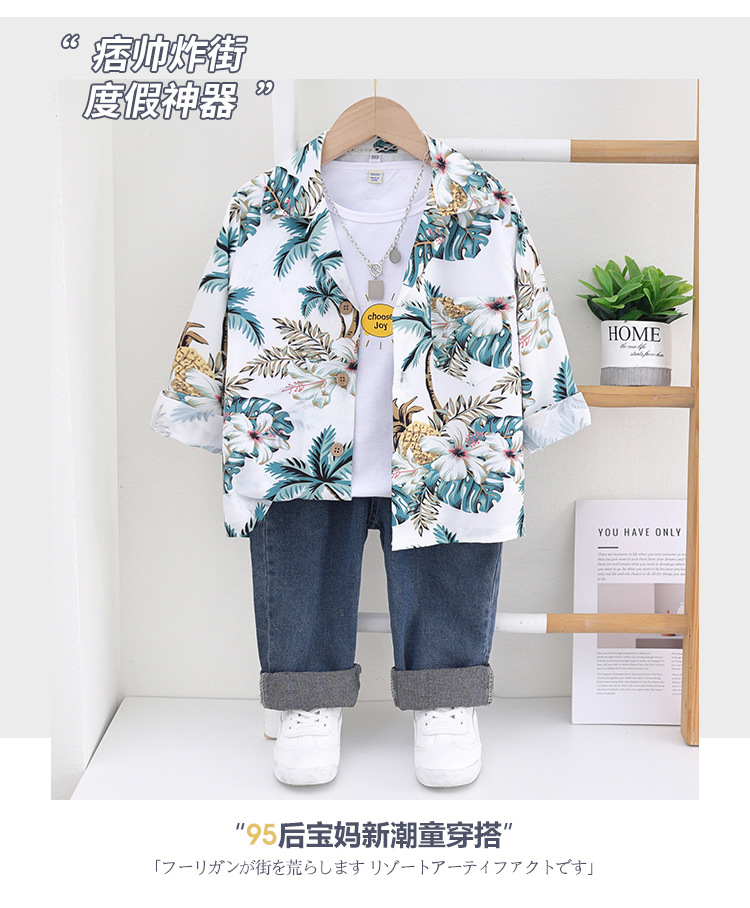 • 꽃무늬 셔츠 + 청바지 + 긴팔 티셔츠 + 목걸이