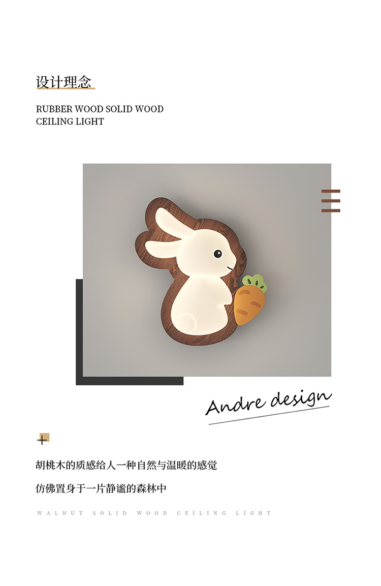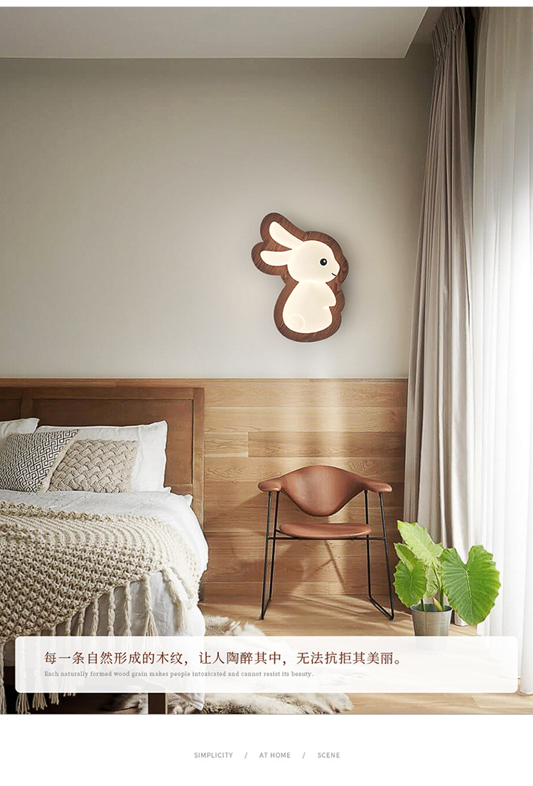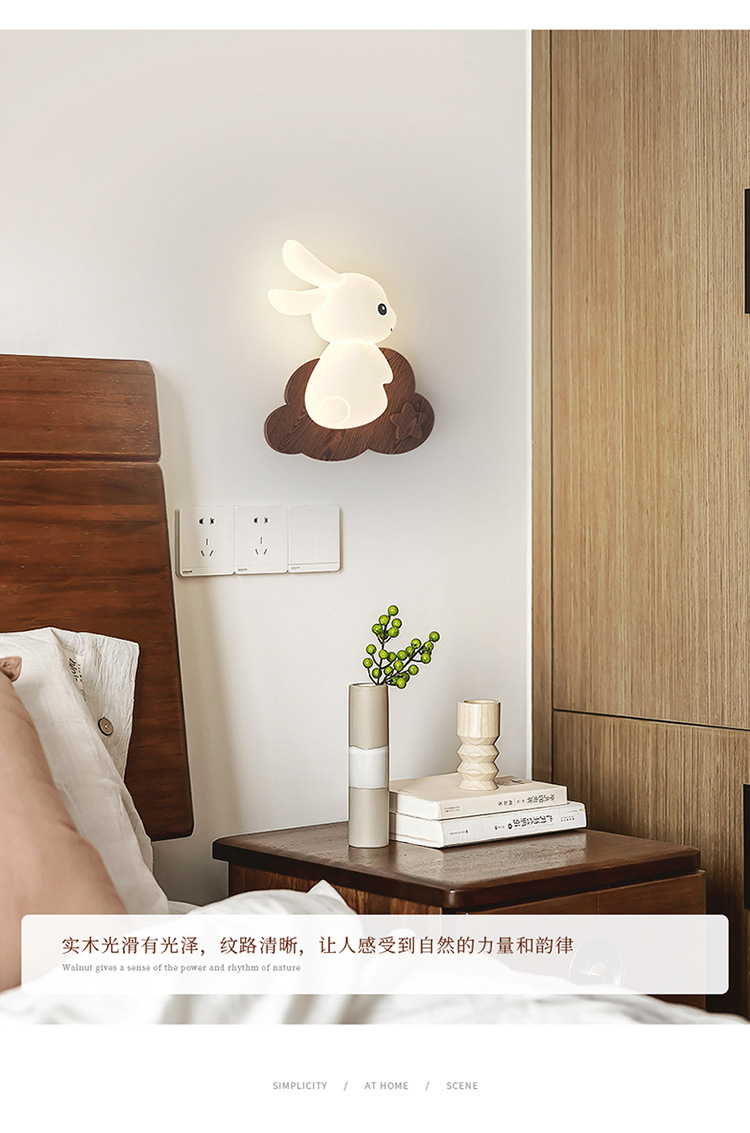 2024 새로운 크림 스타일 토끼 침실 침실 램프 노르딕 로그 전체 스펙트럼 눈 보호 만화 어린이 방 벽 램프