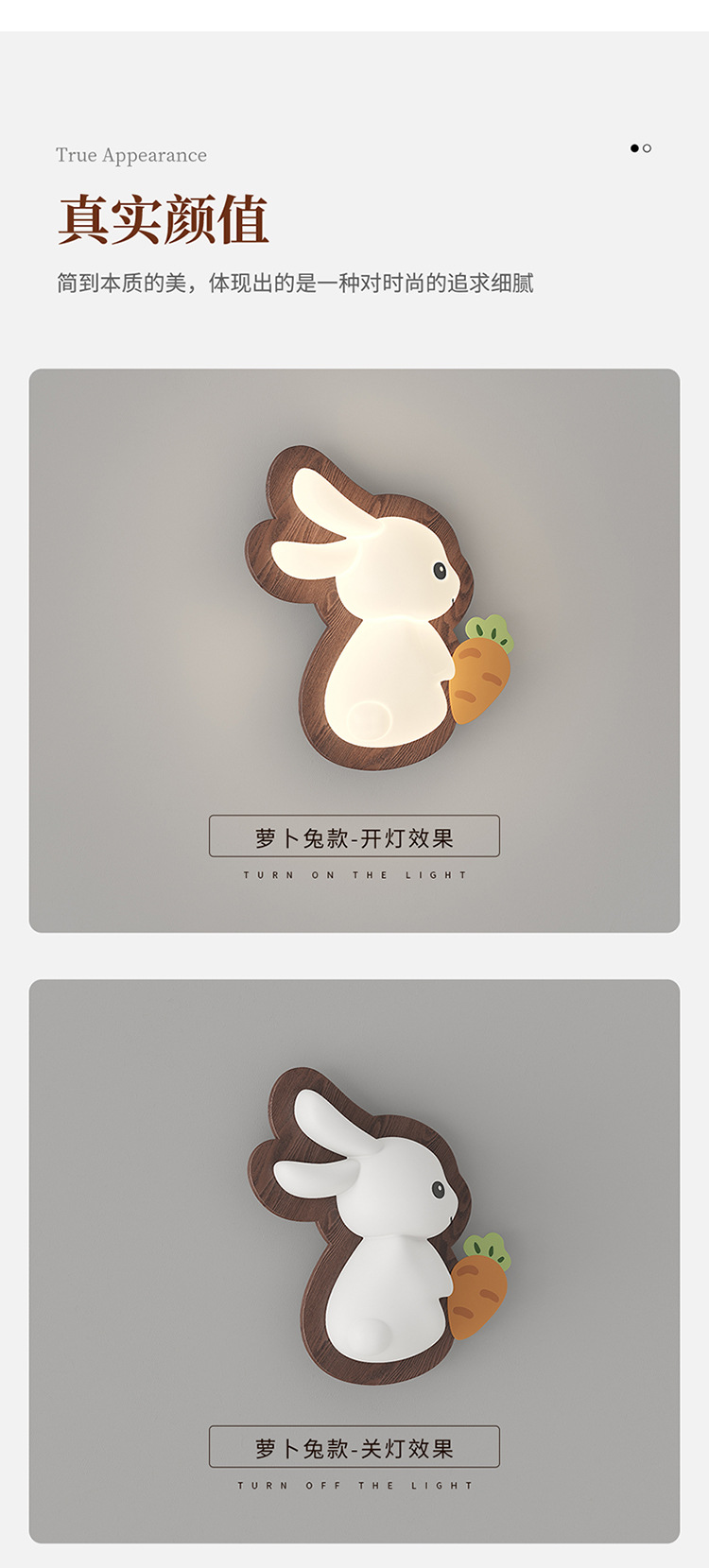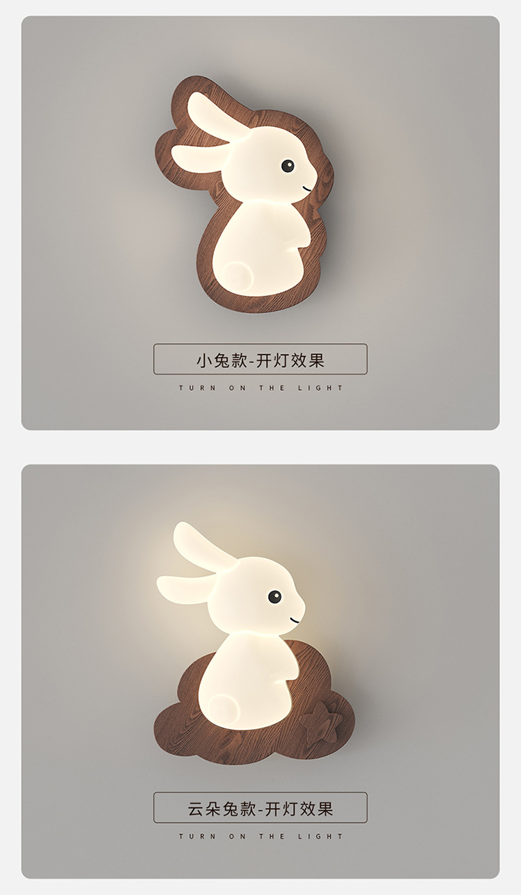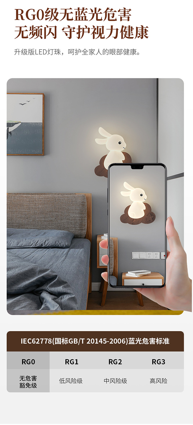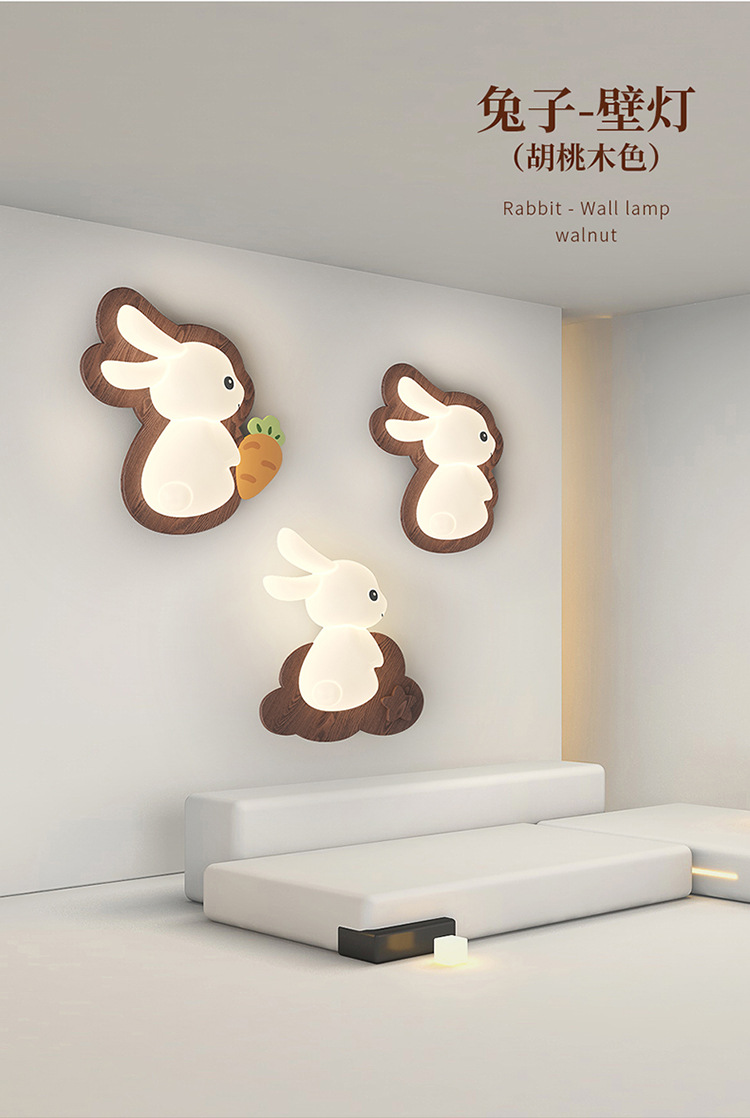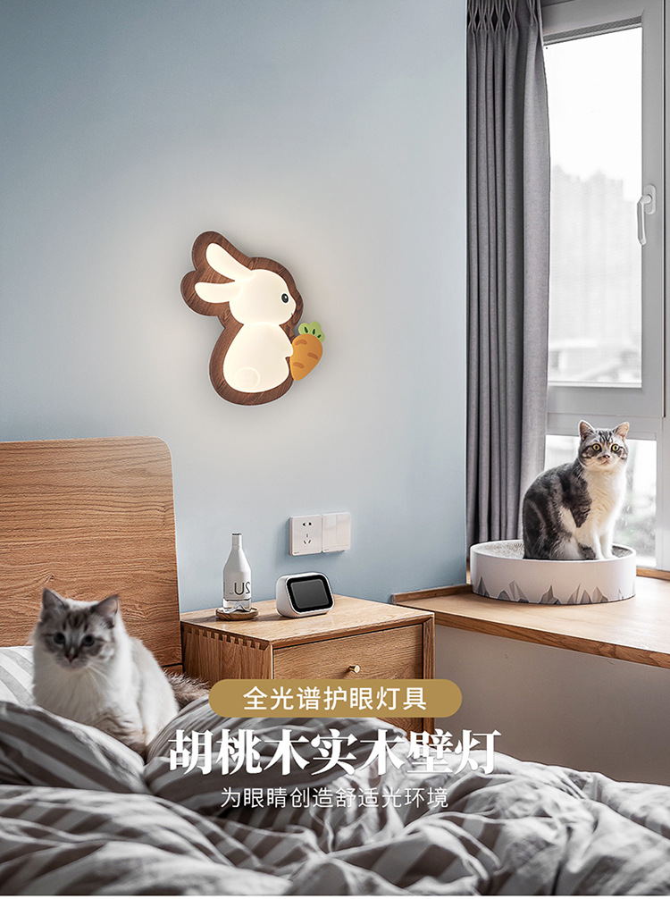 2024 새로운 크림 스타일 토끼 침실 침실 램프 노르딕 로그 전체 스펙트럼 눈 보호 만화 어린이 방 벽 램프스토어 가기