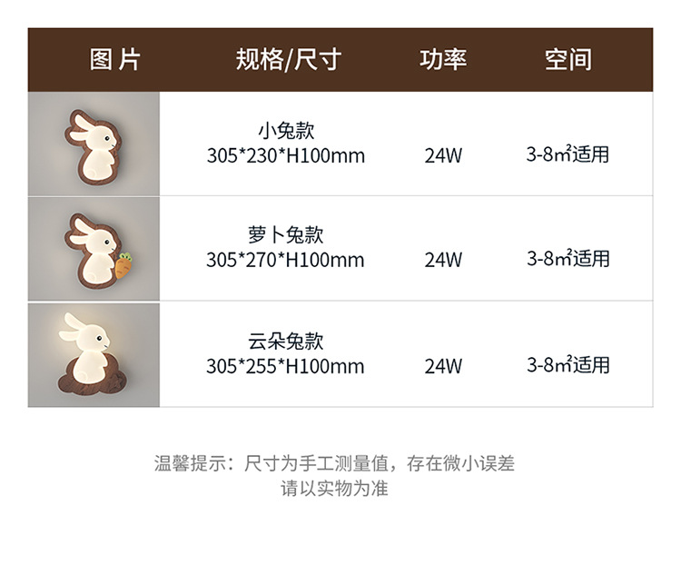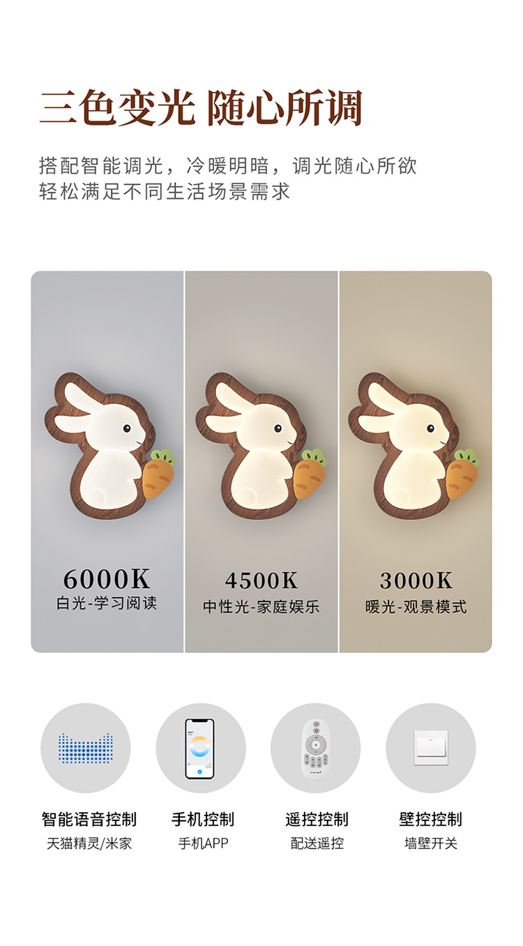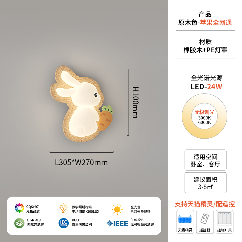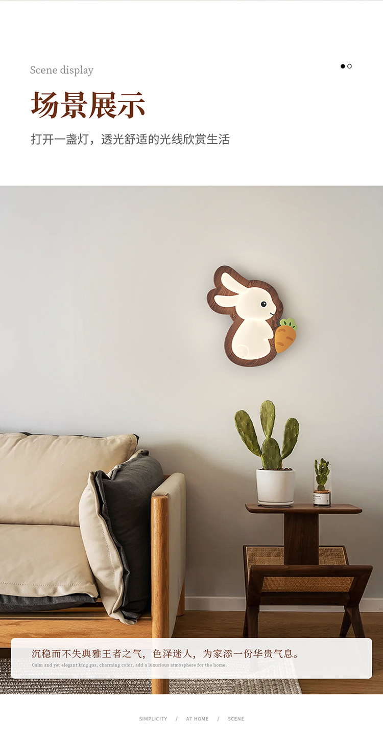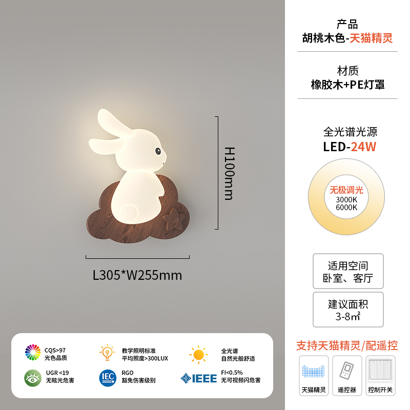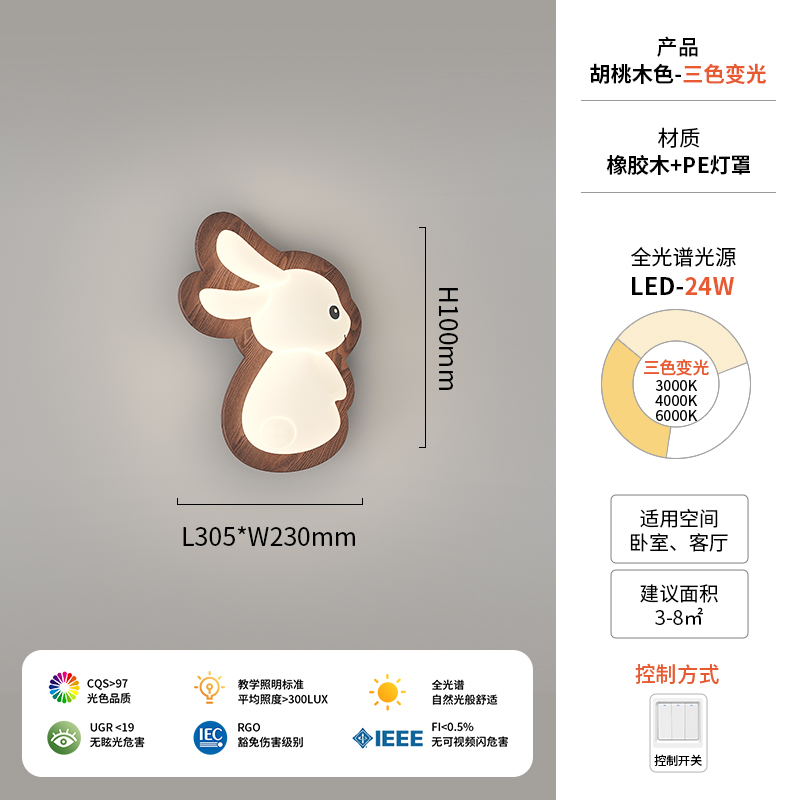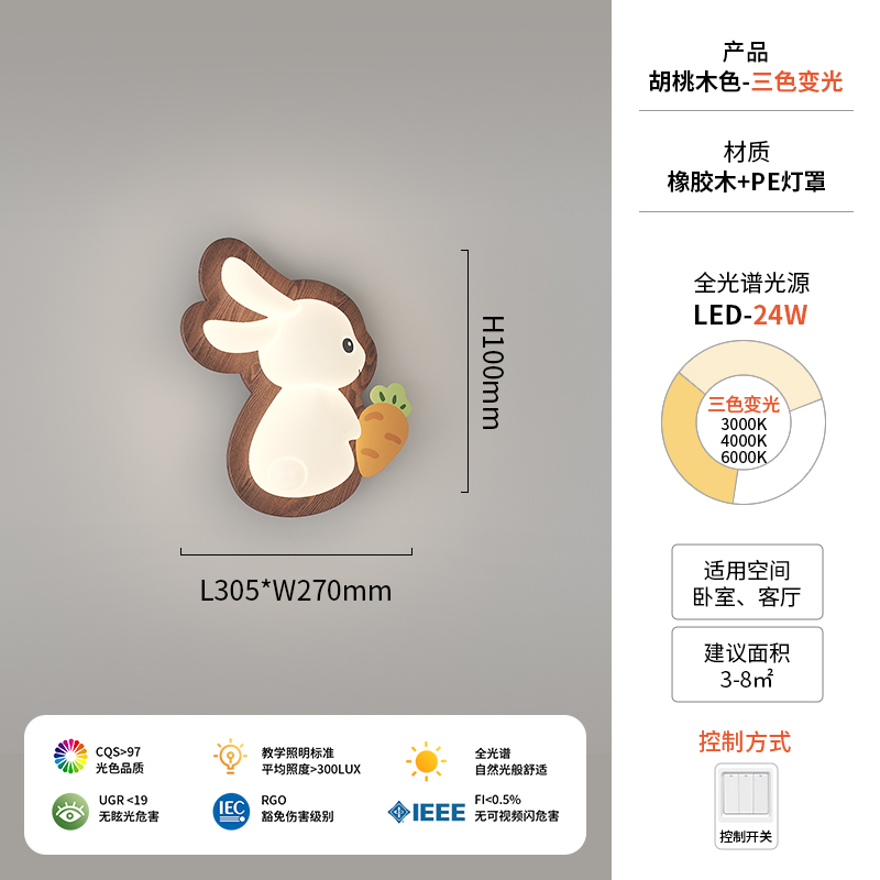 2024 새로운 크림 스타일 토끼 침실 침실 램프 노르딕 로그 전체 스펙트럼 눈 보호 만화 어린이 방 벽 램프스토어 가기